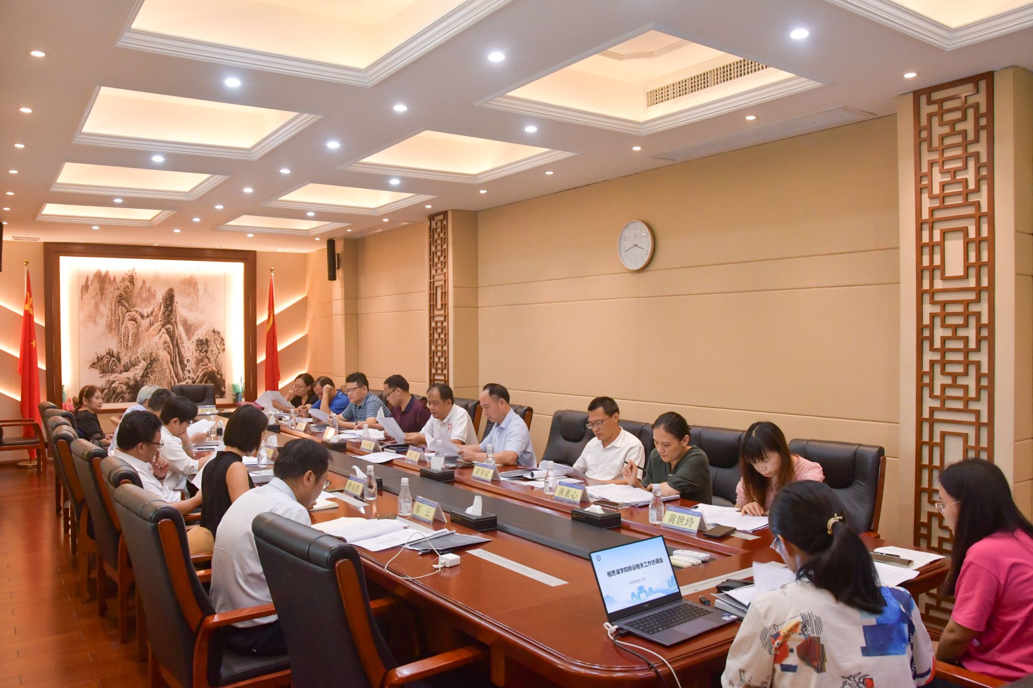 8月11日,学校党委常委、副校长蔡高根、何立荣在相思湖校区共同主持召开相思湖学院转设相关工作协调会,并会见吉利人才集团副总裁顾斌一行。双方希望加强沟通与合作,进一步推进相关工作。(初审/黄素心 图文/马小丽 编/邓思馨 复审/韦利坤 终审/孙寿媚)