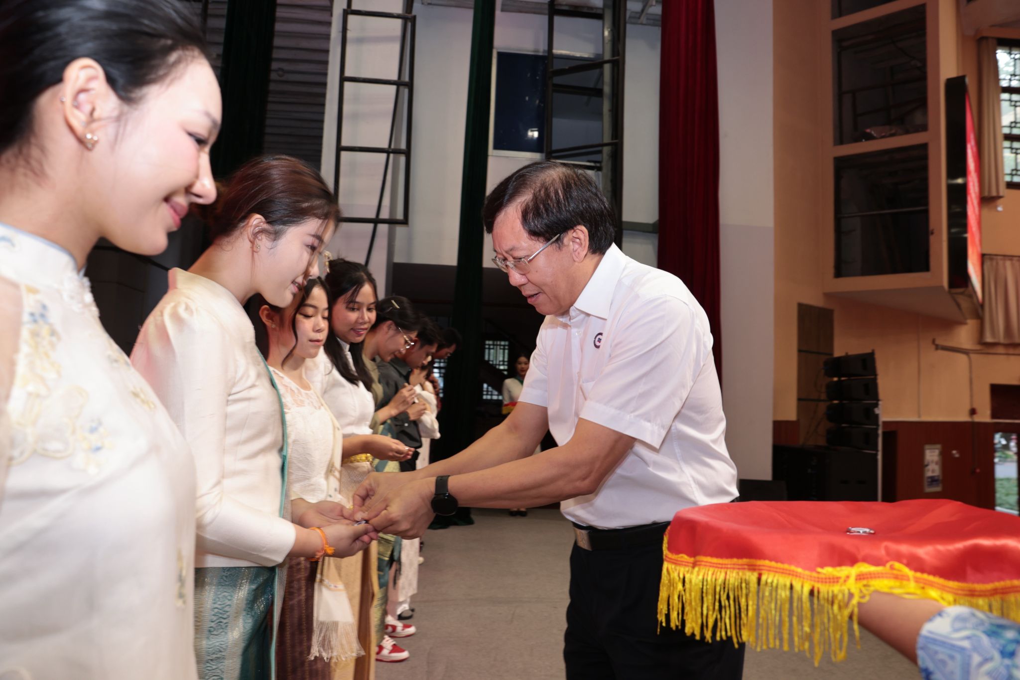 国际教育学院2023级汉语国际专业缅甸籍本科生林诗涵、文学院2023级国际中文教育专业老挝籍硕士研究生安宁作为在校生代表,分别从个人成长经历、学术成果以及校园生活感受等方面进行发言。她们表示,留学生活是独立生活与个人成长的重要阶段,希望新生们勇于克服困难,积极投身实践,在团结协作中增长才干与本领。