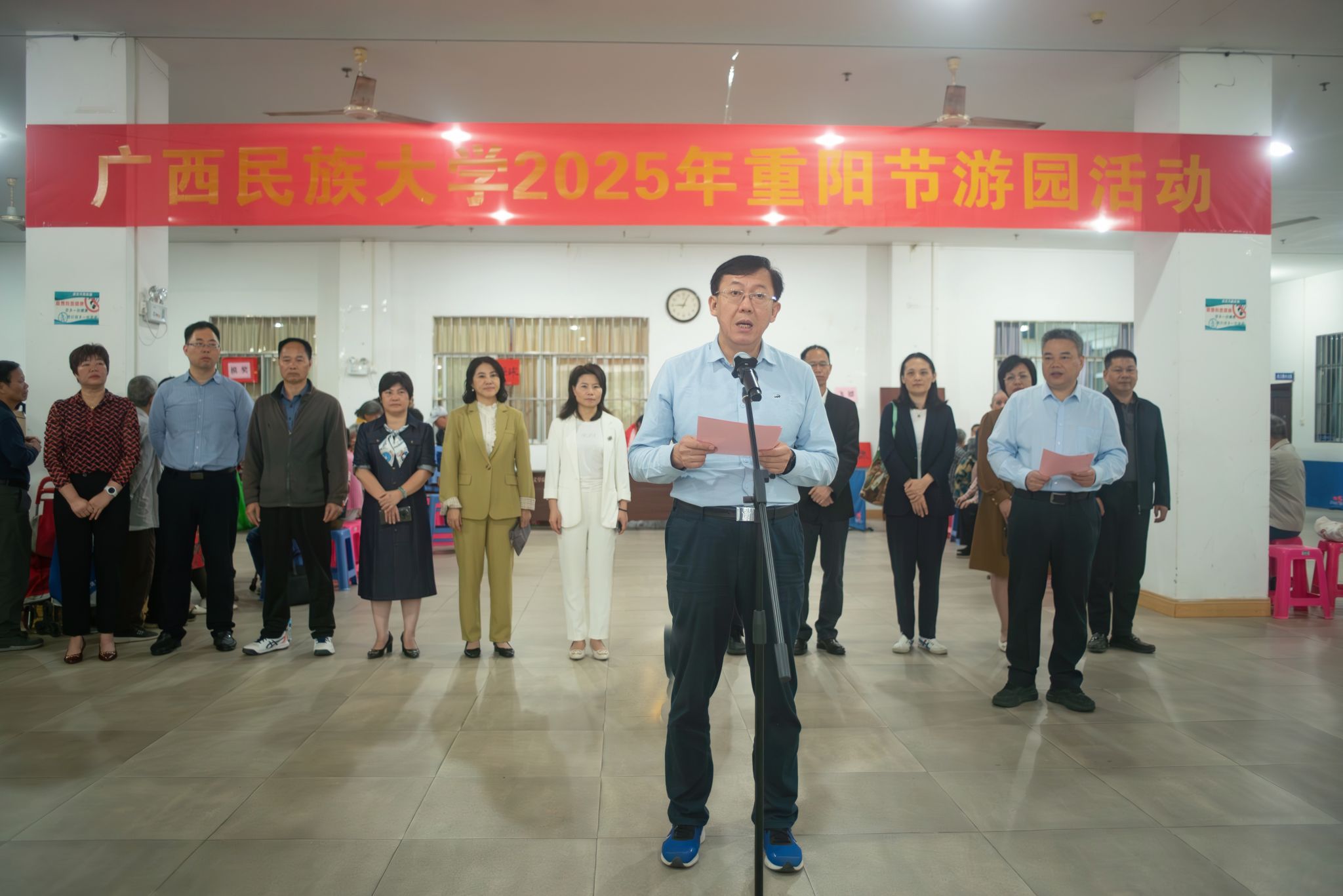 【大学生通讯社报道】10月29日上午,广西民族大学2025年重阳节游园活动在相思湖校区老年活动中心举行,校党委书记唐平秋出席活动并致辞,党委副书记陈铭彬主持,有关职能部门负责同志、全体离退休老领导、老同志参加活动。