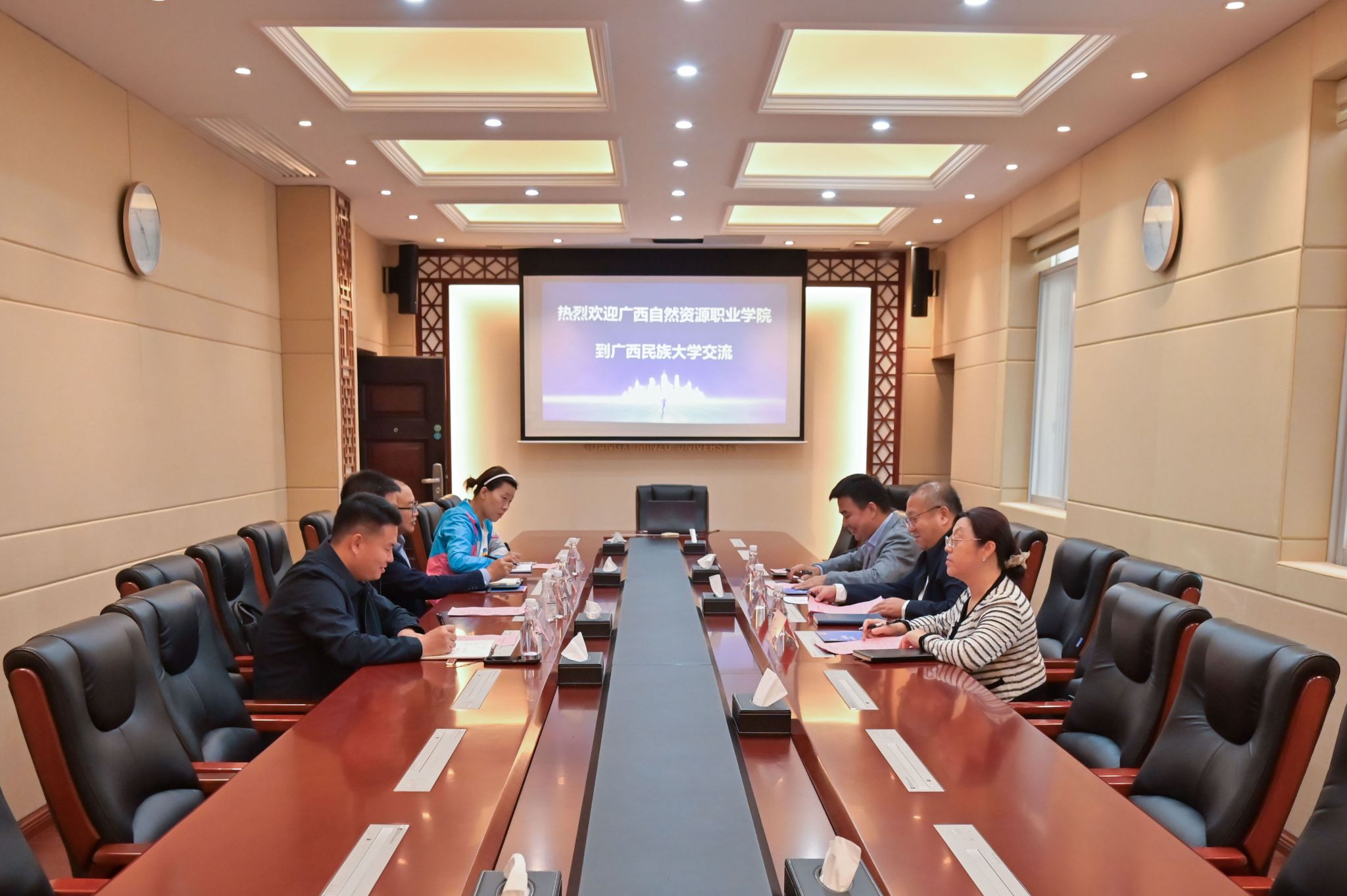 10月30日,校党委常委、副校长吕俊彪会见广西警察学院副院长唐魁彪一行,双方就校园基建、学科建设、机构管理模式创新等议题展开交流,希望加强交流合作,深化资源共享,共促院校高质量发展。(初审/刘银妹 图文/罗洁妮 编/李杨洁 复审/韦利坤 终审/孙寿媚)