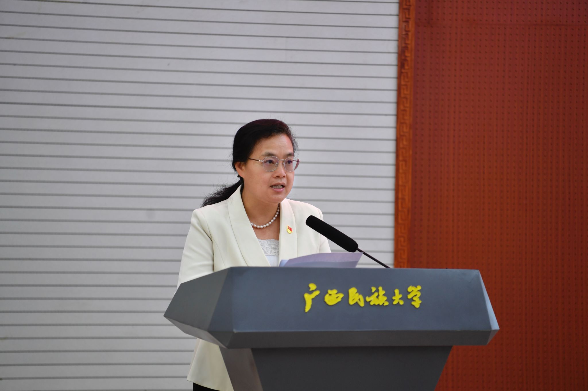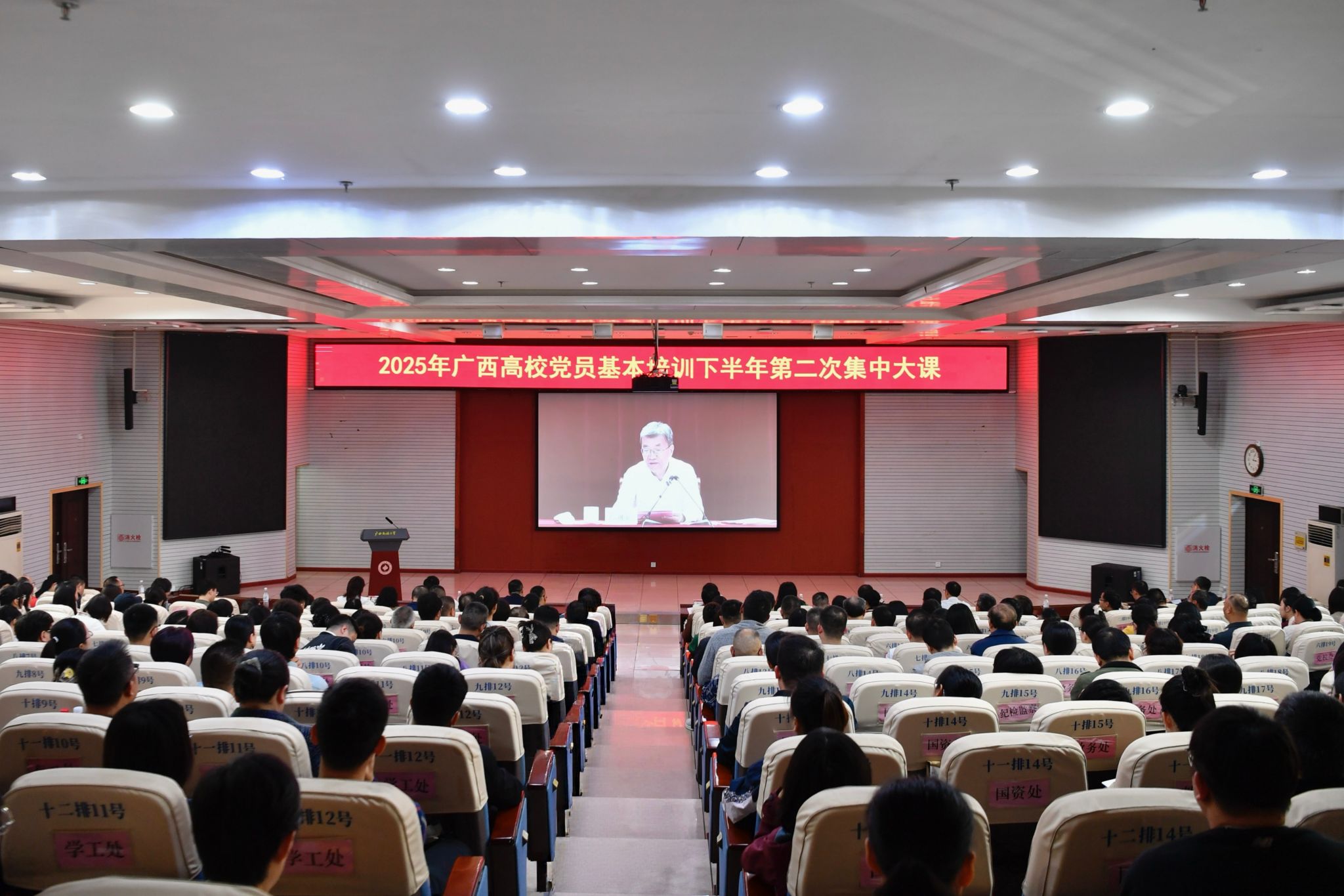 12月2日,广西民族大学举行2025年党员基本培训下半年第二次集中大课,共同学习教育部党组书记、部长怀进鹏主讲的“深入学习贯彻习近平总书记关于教育的重要论述 以教育强国支撑引领中国式现代化”专题党课。学校党委副书记、校长韦仕珍作培训动员讲话,全校6400余名师生党员以主会场与分会场同步、线上线下相结合的形式参加培训。自治区党委教育工委相关同志参加学习。