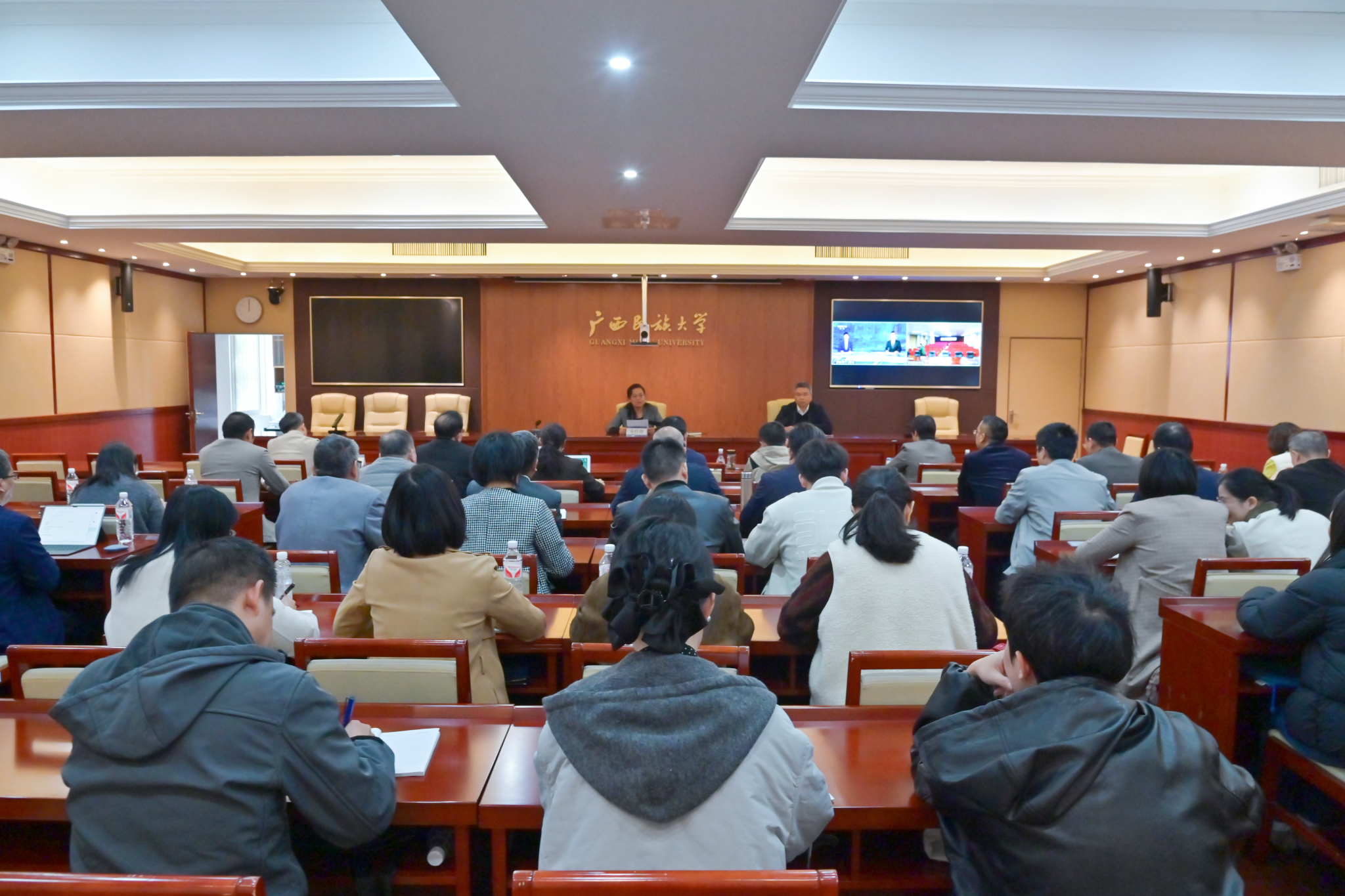 学生工作部(处)、教务处、各学院主要负责人,学院分管就业工作领导、2026届毕业班辅导员等参加会议。(初审:肖耀科 编辑:韦丽娜 实习编辑:苗予嘉 复审:韦利坤 终审:孙寿媚)