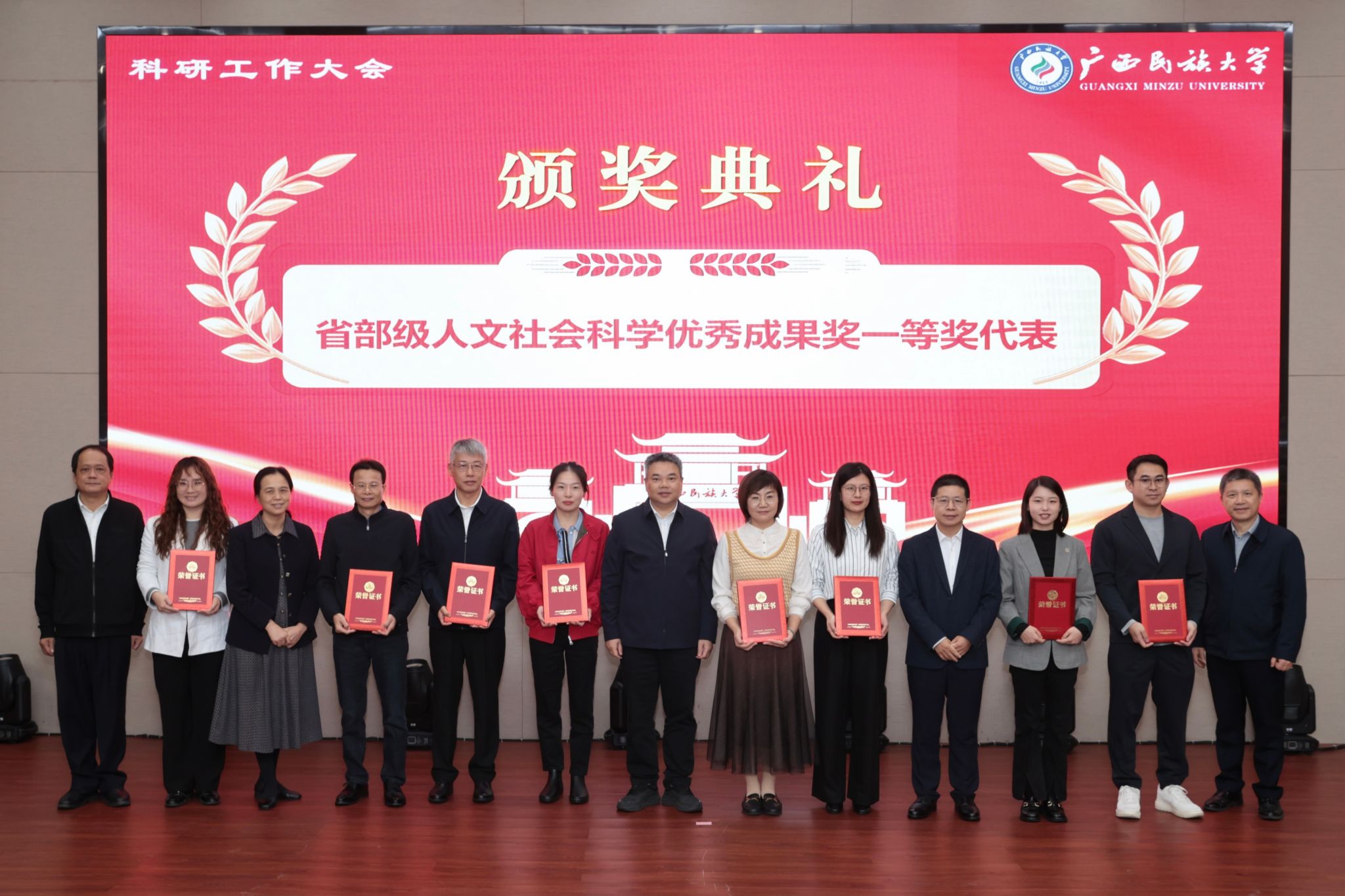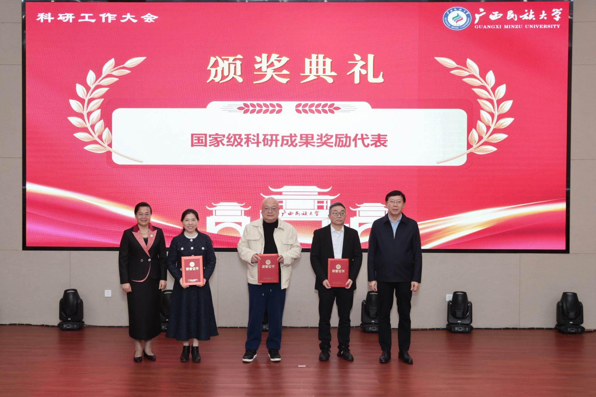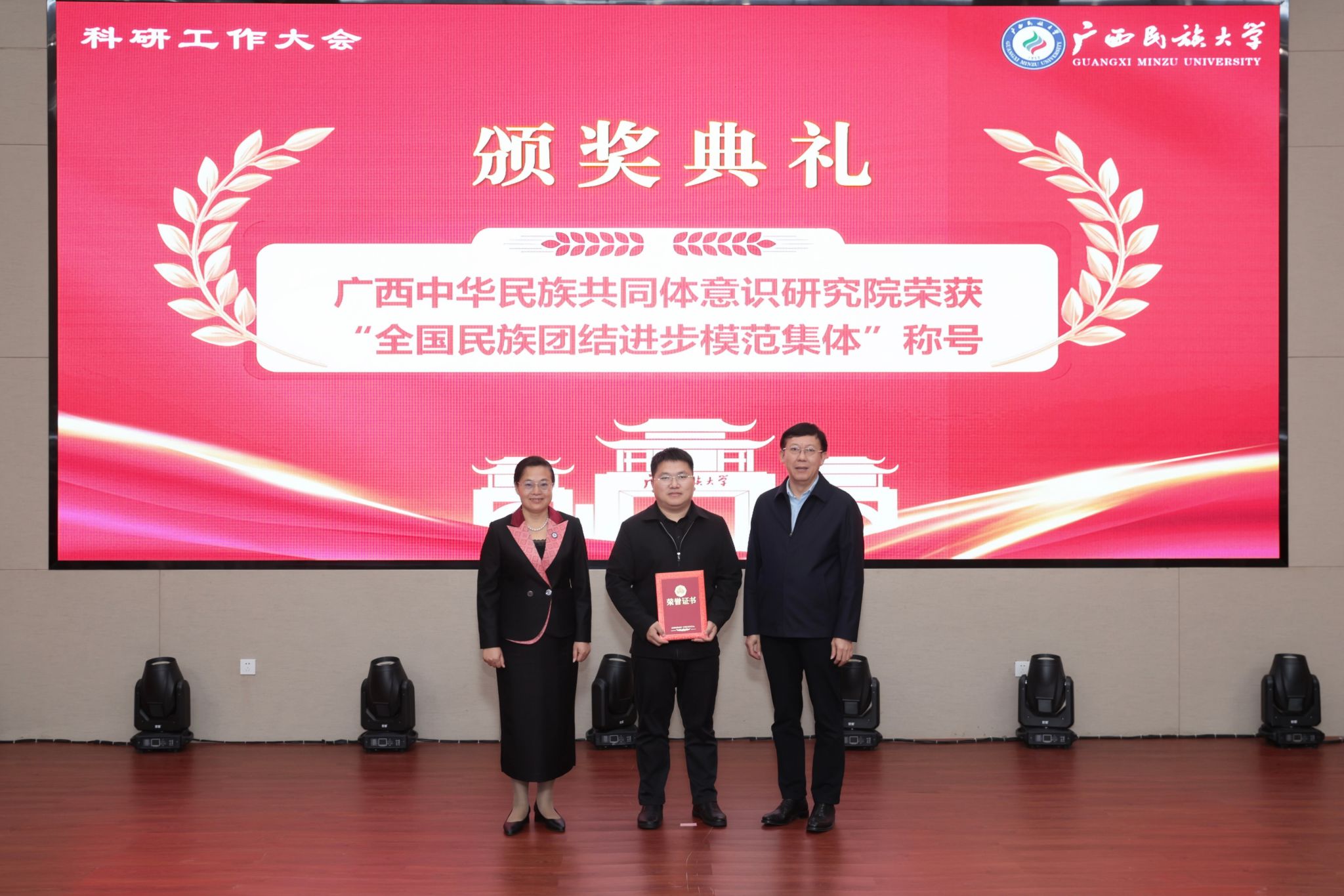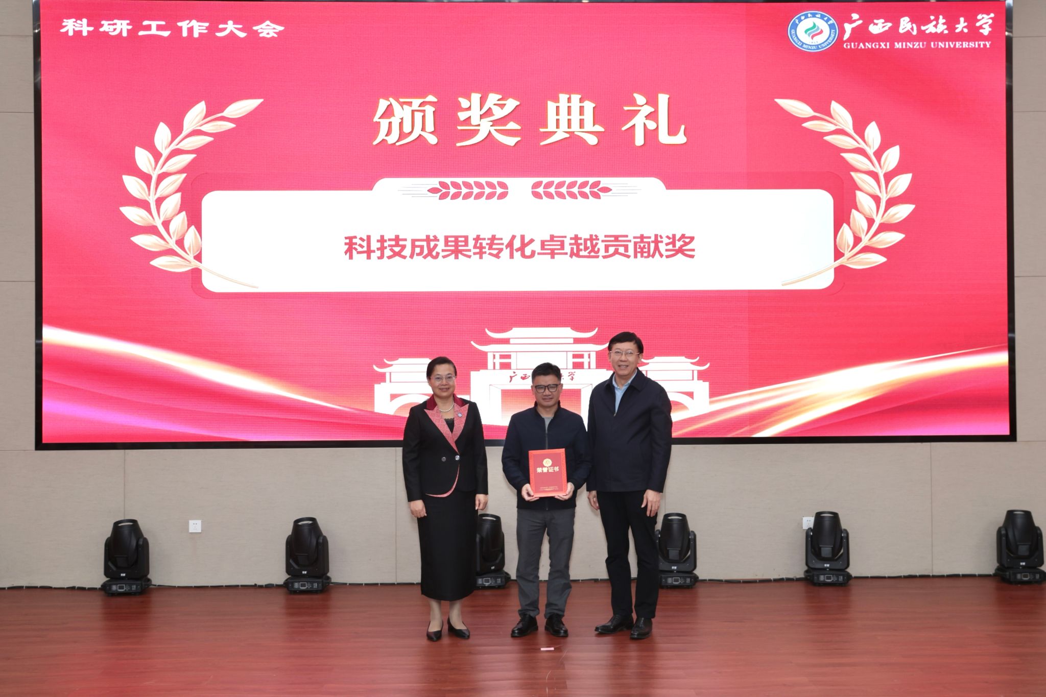 颁奖仪式上,校领导分别为获“全国民族团结进步模范集体”称号、“国家级科研成果奖励”“科技成果转化卓越贡献奖”“省部级科研成果奖励”以及“科研管理先进集体”“科研管理先进个人”的代表颁奖,表彰先进、凝聚干劲。