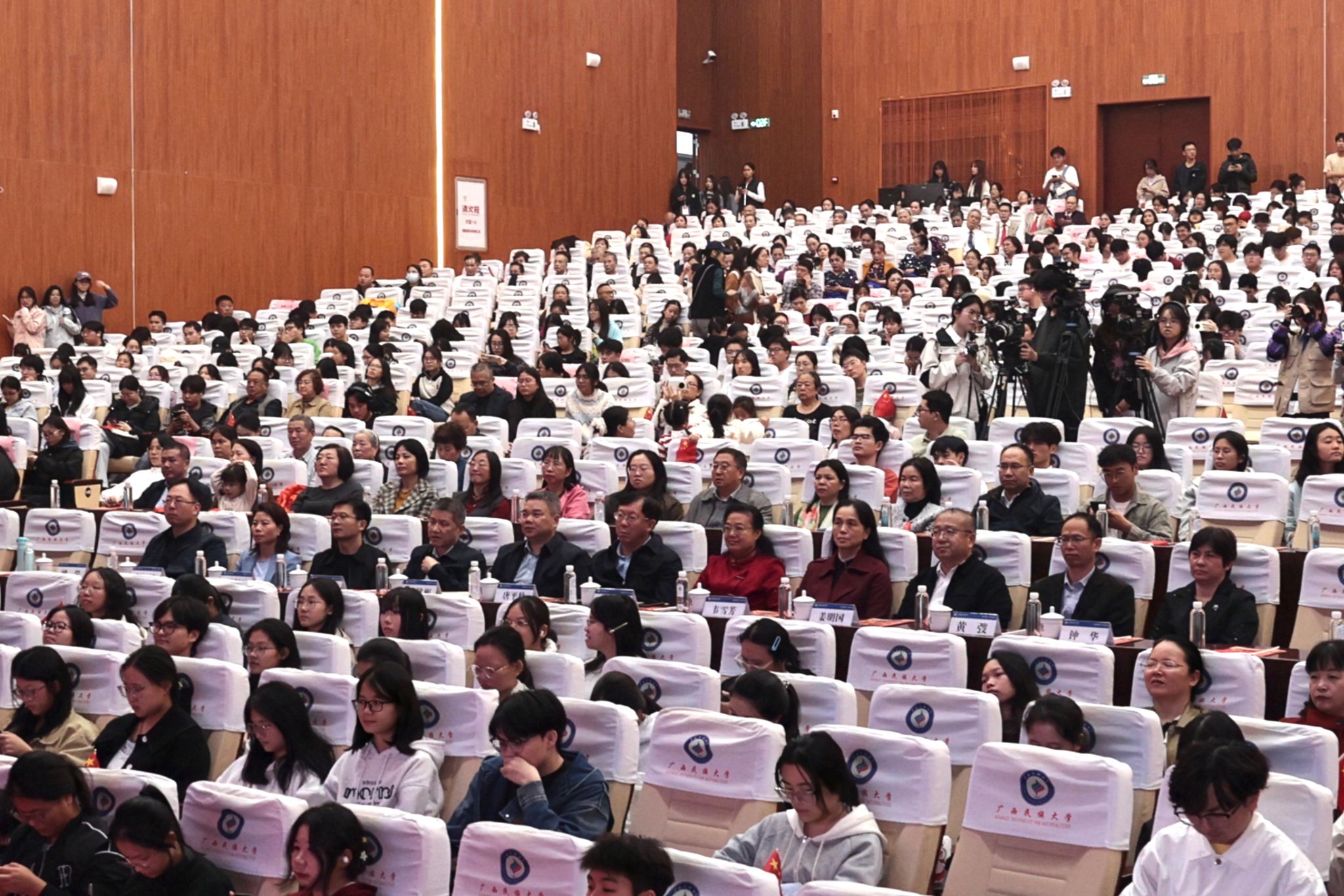 【大学生通讯社报道】国家主席习近平于12月31日晚7时通过中央广播电视总台和互联网,发表二〇二六年新年贺词。广西民族大学党委书记唐平秋,校长韦仕珍,校领导陈铭彬、韦雪芳、吕俊彪、姜明国,有关职能部门负责人,以及全校师生代表在思源湖校区大礼堂集中收看直播。