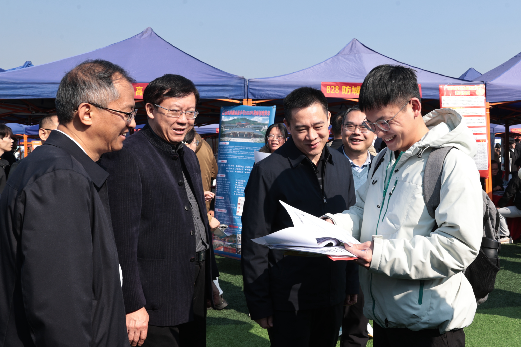 【大学生通讯社报道】1月10日上午,广西2026届综合性高校毕业生就业双选会暨广西2026届“少数民族高层次骨干人才计划”毕业生就业双选会在广西民族大学思源湖校区李宁田径场举行。自治区教育厅副厅长傅源方,广西民族大学党委书记唐平秋、党委副书记陈铭彬,自治区人力资源和社会保障厅二级巡视员李博等领导到场调研指导,自治区卫生健康委员会、自治区国有资产监督管理委员会、学校学生工作部(处)等有关负责人参加调研。