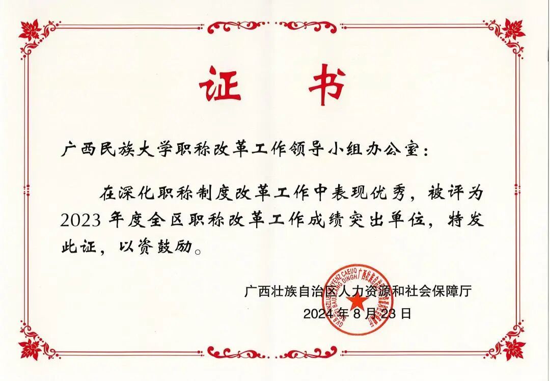 “十四五”时期,完成职称评审380人次、认定348人次,588人晋升职称,学校职称改革工作领导小组办公室被评为2021年度全区职称改革工作先进单位和2023年度全区职称改革工作成绩突出单位。