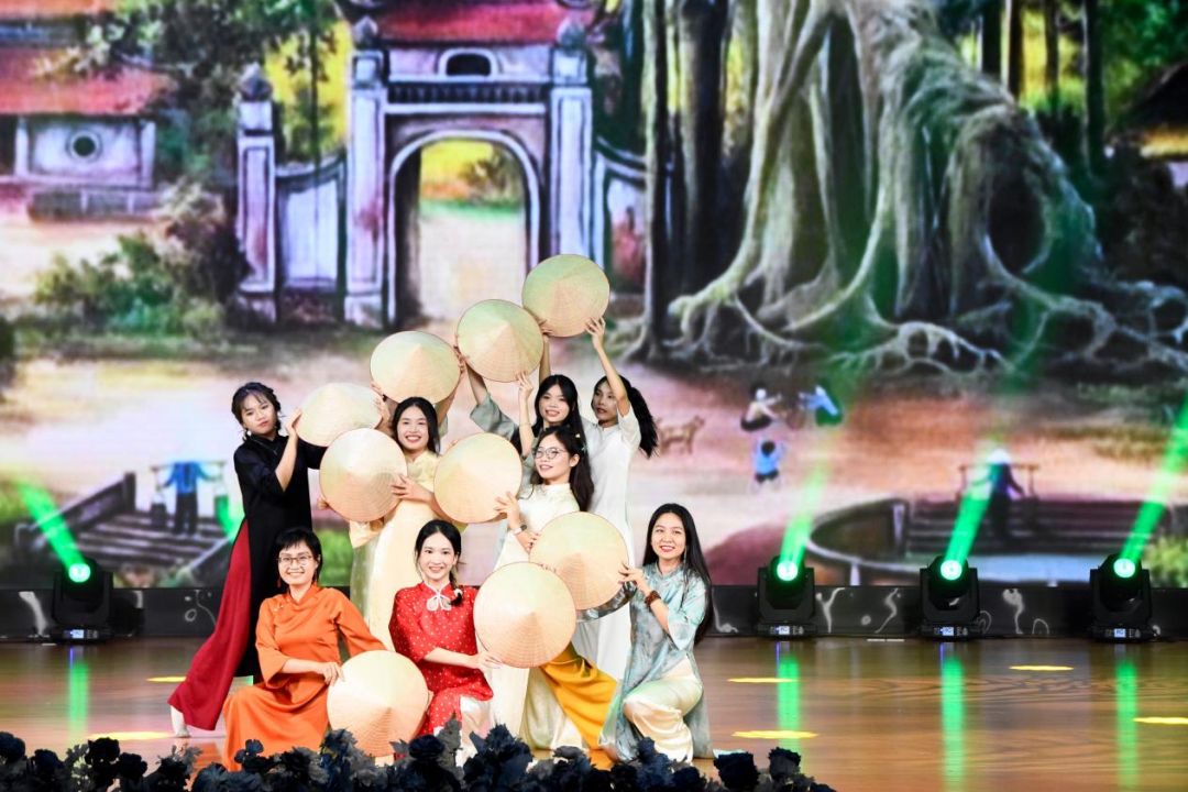 2024年11月3日,越南留学生在学校非通用语专业建设与发展60周年庆典晚会上表演越南斗笠舞。
