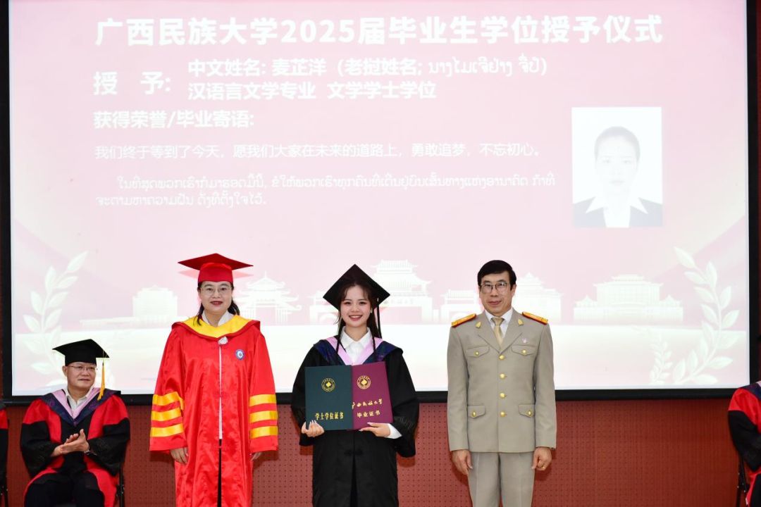 2021年老挝国立大学孔子学院开设全球孔院首个中文师范本科专业,2025年6月,首届中老“2+2”联合培养中文师范生项目学生举行毕业典礼暨学位授予仪式,老挝国立大学校长德萨努拉·森登德为毕业生颁发毕业证,广西民族大学校长韦仕珍为毕业生颁发学位证。