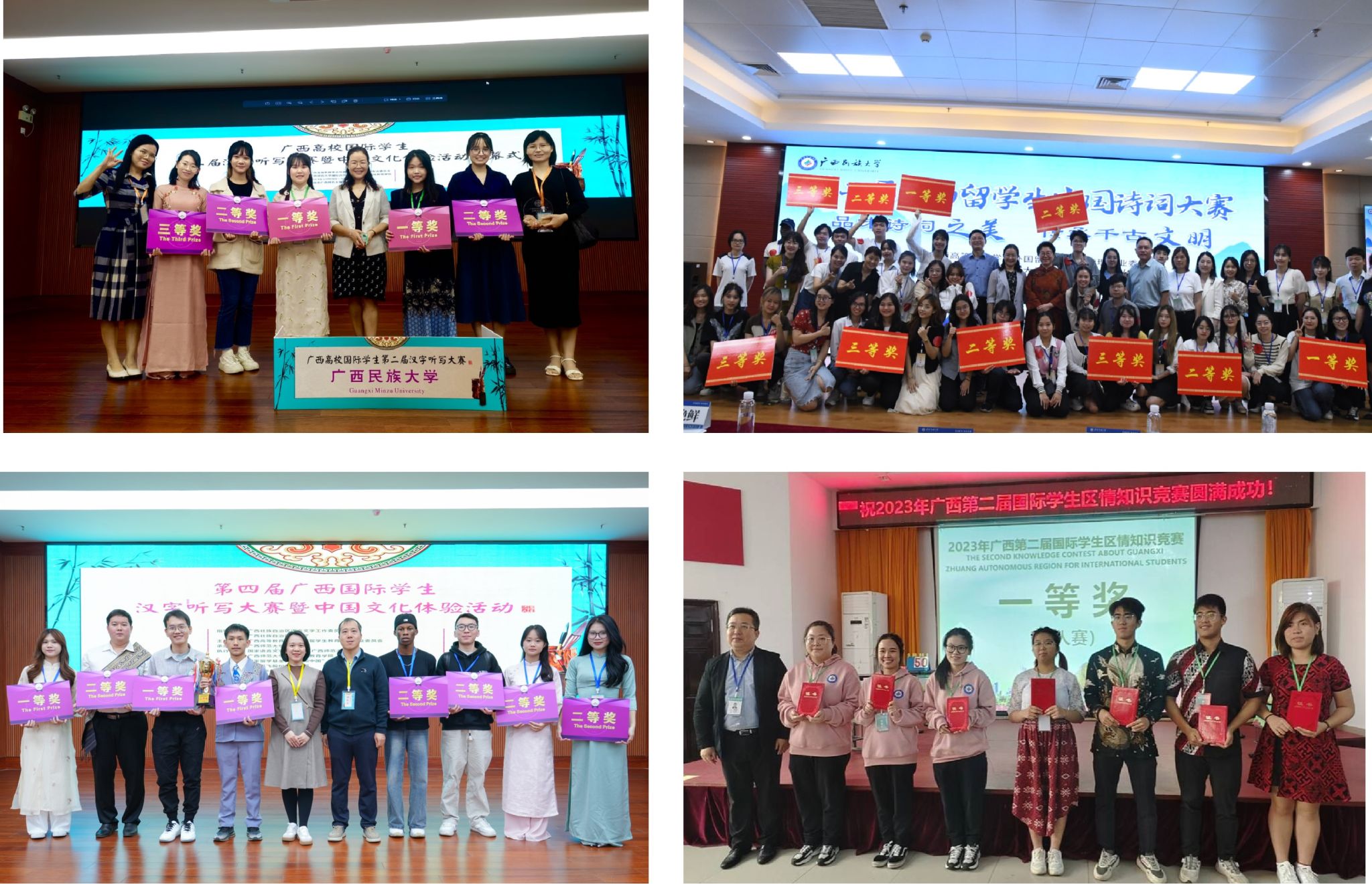 多元互动,人文交流平台增进理解促进融合。五年接待三所共建孔院的“汉语桥”访华团等172人,组织校内文化体验课及赴桂林、北海、北京等地体验文化风俗,增进文化了解。积极搭建人文交流平台,组织留学生参与校园国际文化节、美食节、泼水节等活动;支持留学生参加“当代世界·美美与共”论坛、东盟青年科学家论坛等学术活动;组织参加“中华经典诵读”等竞赛,获省部级以上奖近200项;组织参与“三月三”、中国-东盟博览会、北京冬奥云合唱等大型活动,深化文化认同。