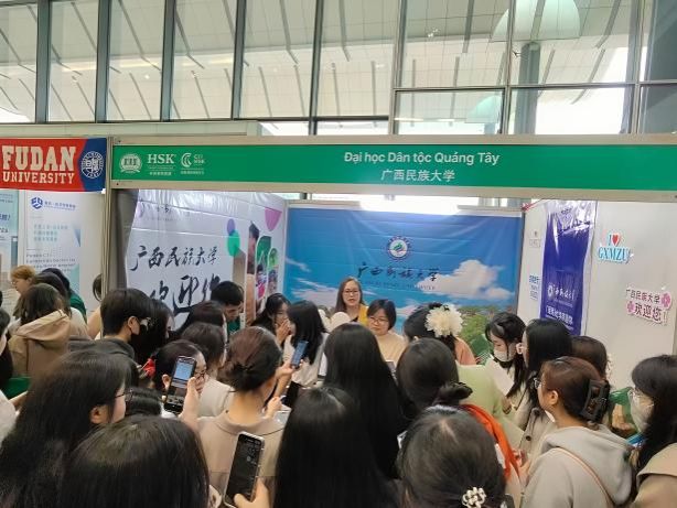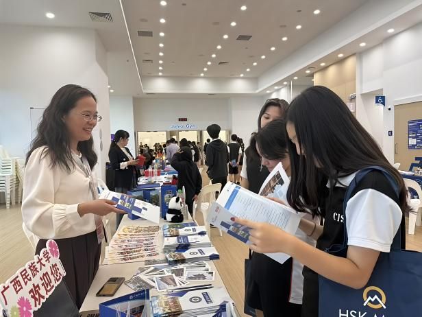 通过参与各类教育展,开展直播宣讲、体验营等活动展示学校办学实力与品牌魅力。图为2025年3月26日、29日,学校分别参加新加坡首届HSK留学中国交流会和越南(第五届)HSK留学中国展。