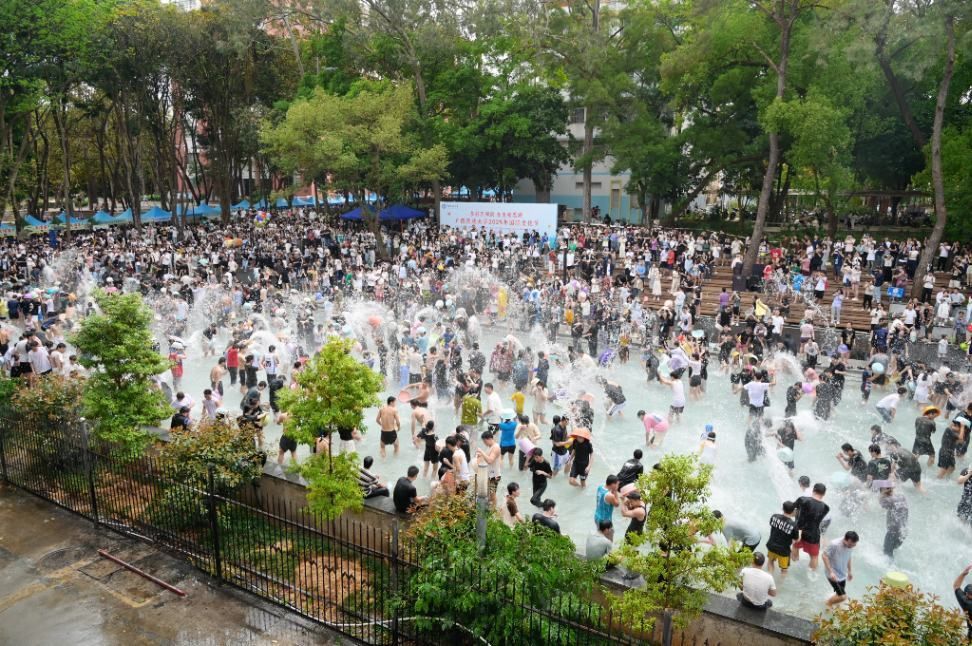 2025年4月16日,学校举办“多彩五洲韵,合美相思湖”2025年国际文化节活动,图为泼水祝福现场。