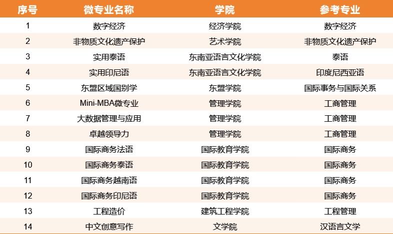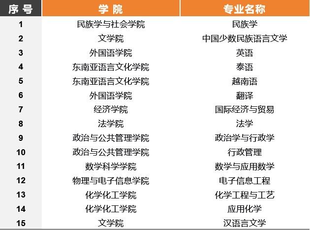 优化专业结构,建设一流方阵。坚持“控制总量、优化结构、提升质量”原则,五年间新增本科专业12个、撤销18个,实现专业结构动态优化。新增国家级一流本科专业建设点2个、自治区级13个,目前共有国家级一流专业建设点15个,覆盖文、理、工、经、法等多个学科门类。创新实施微专业建设,立项建设14个微专业,开设国际商务法语、实用泰语等特色班级,培养复合型专业人才。