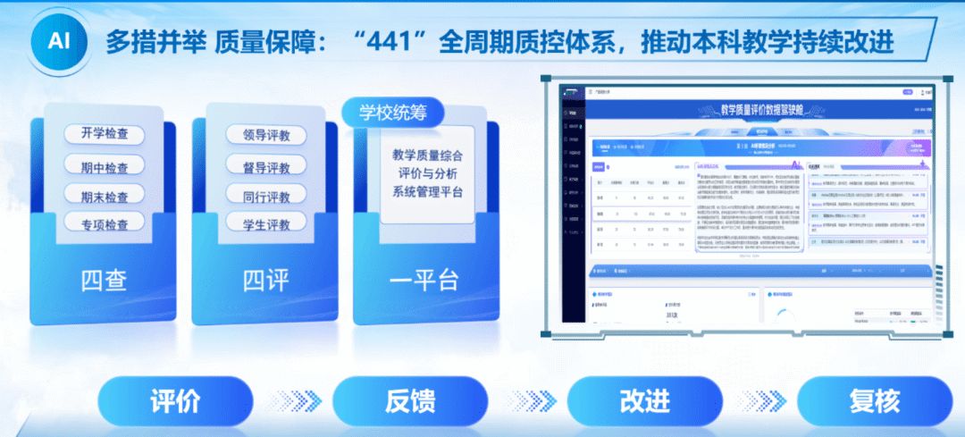 完善质量保障,拓展国际合作。构建“四查、四评、一平台”教学质量监控体系,实现教学过程全覆盖监测。建设教学质量管理队伍,共有校院两级教学督导和信息员队伍960人。扎实推进专业认证工作,4个师范类专业完成认证入校考查,6个专业提交工程教育认证申请。与澳大利亚、意大利等多所高校开展学分互认联合培养项目,与东盟高校共建国际联合实验室,人才培养国际化水平持续提升。