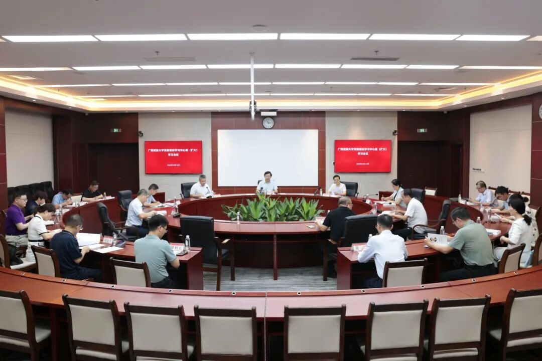 2025年10月16日下午,广西民族大学党委理论学习中心组(扩大)学习会在相思湖校区文化研习基地举行,深入学习贯彻《习近平谈治国理政》第五卷。
