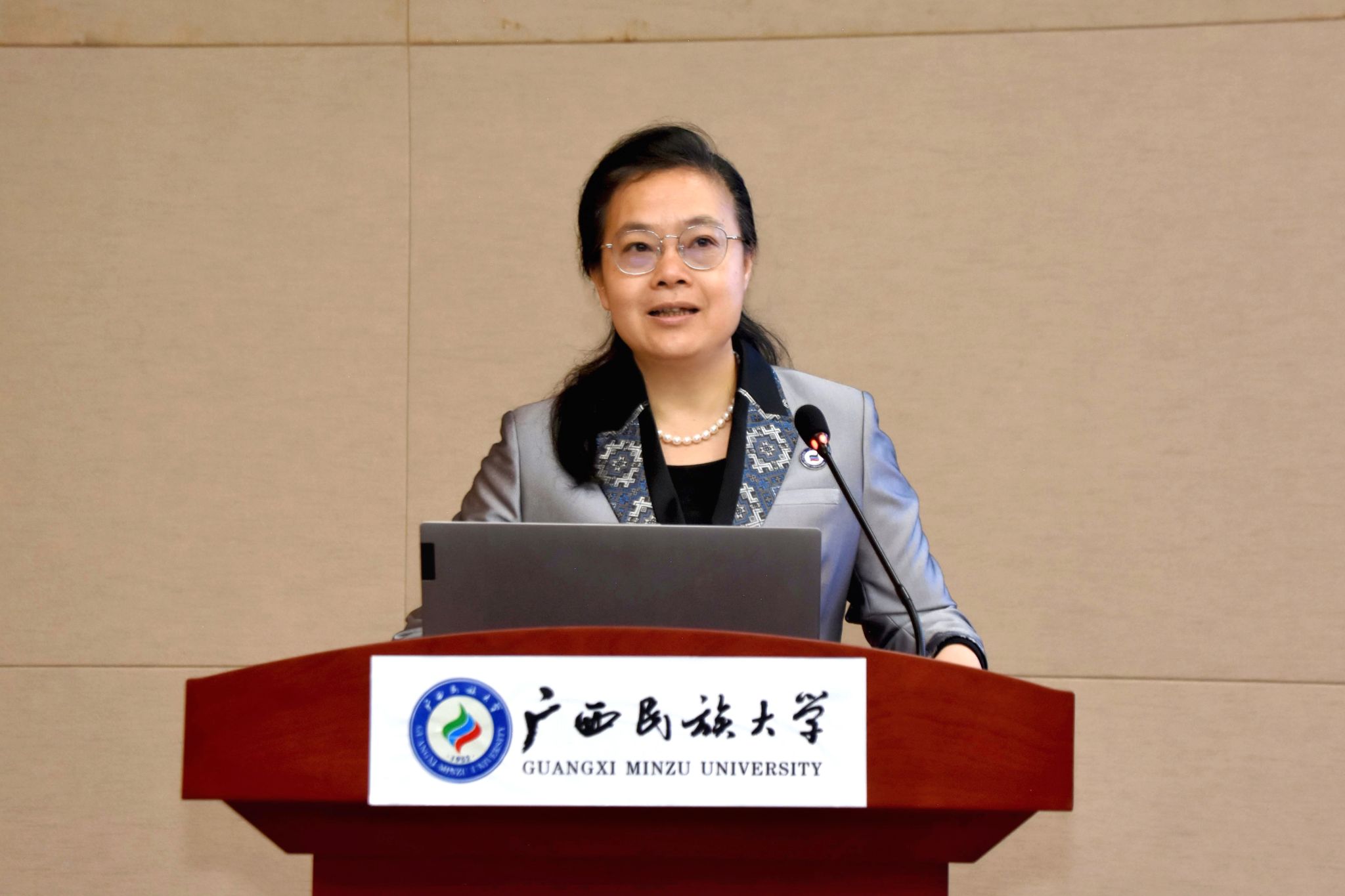 韦仕珍代表学校作题为“立德铸魂、智能强教,打造面向东盟服务产业的本科人才培养高地”的大会报告,全面总结学校2018年以来本科教学工作特别是本科教育教学审核评估整改工作取得的成绩与经验,深刻剖析当前本科教学工作中亟待破解的瓶颈难题,并就审核评估整改任务和未来五年本科人才培养发展目标作出清晰部署。报告指出,要围绕学校高质量发展主线,深入落实立德树人根本任务,主动对接国家战略和广西区域经济社会发展需求,以人工智能深度赋能本科教育教学改革创新,培养兼具数智素养、精准适配产业需求、服务中国-东盟合作的高素质复合型人才。