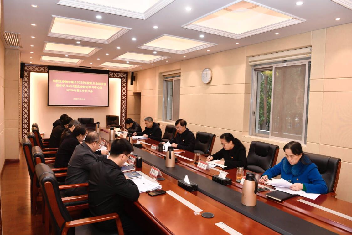 1月22日上午,广西民族大学举行学校党委领导班子2025年度民主生活会前集体学习研讨暨党委理论学习中心组2026年第1次学习会,深入学习领会习近平新时代中国特色社会主义思想特别是习近平总书记关于党的自我革命的重要思想和关于加强党的作风建设的重要论述,学习贯彻习近平总书记在中共中央政治局民主生活会、二十届中央纪委五次全会上和听取二十届中央巡视省(自治区、直辖市)情况汇报时的重要讲话精神,围绕绷紧自我革命这根弦,聚焦今年民主生活会主题和要求检查剖析的七个方面重点问题,深化思想认识、切实把思想和行动统一到党中央决策部署上来,为开好民主生活会打牢思想和理论基础。学校党委书记唐平秋主持并讲话。党委副书记、校长韦仕珍等校领导班子成员及党委常委参加。