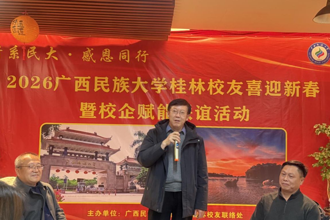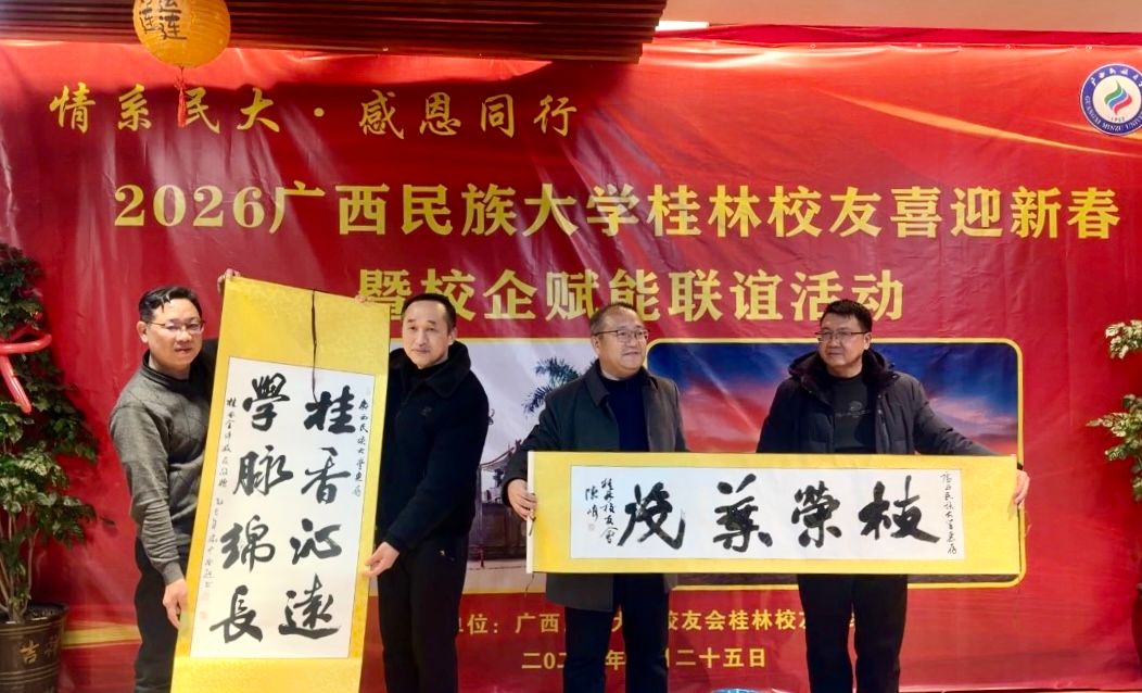 25日下午,来自各行各业的桂林校友欢聚一堂,共赴“情系民大·感恩同行”2026年广西民族大学桂林校友喜迎新春暨校企赋能联谊活动。