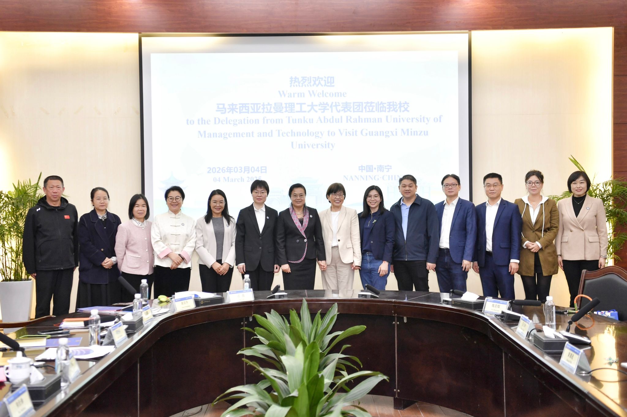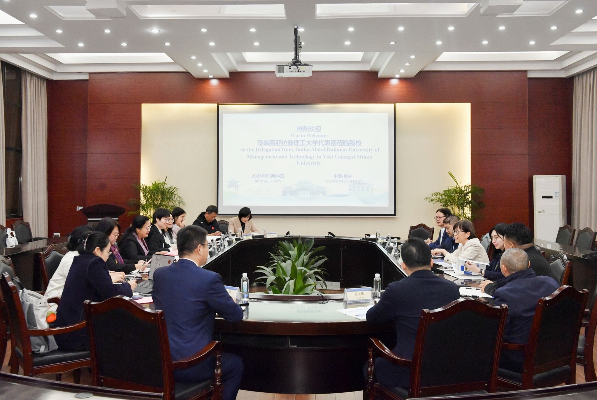 韦仕珍对拉曼理工大学代表团的到访表示热烈欢迎,简要介绍了广西民族大学的办学特色、学科优势及国际化办学成果。她表示,学校始终坚持开放办学,与东盟国家高校建立了紧密合作关系,希望以此次交流为契机,进一步拓展与拉曼理工大学在人才培养、课程设置、科研创新、文化互鉴等领域的合作空间。