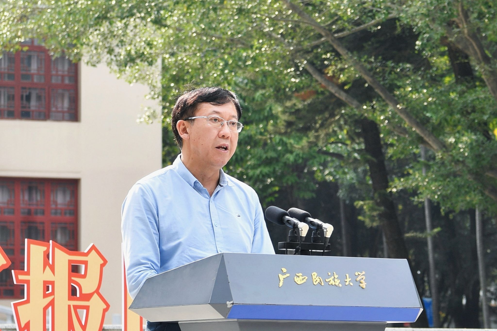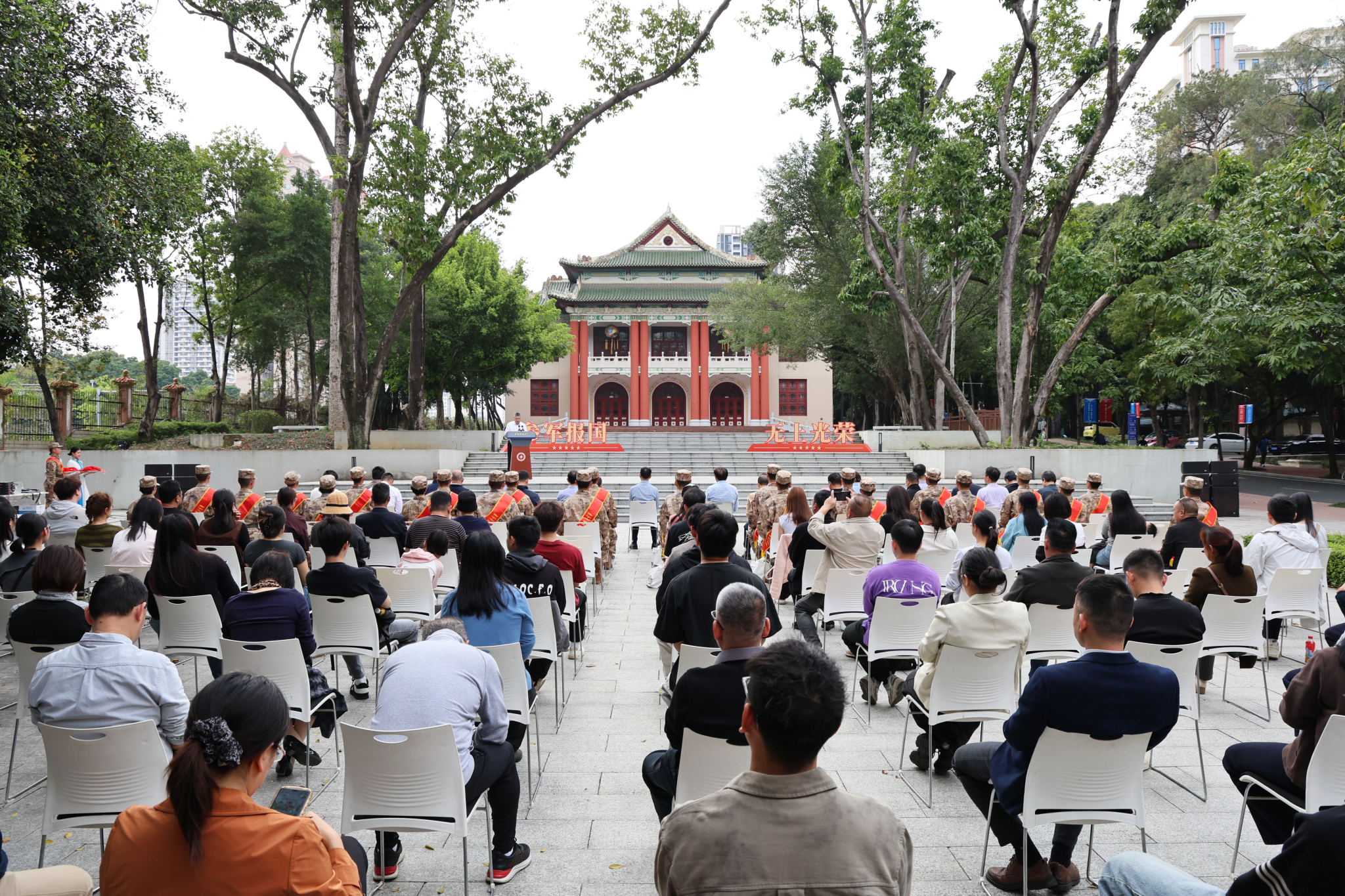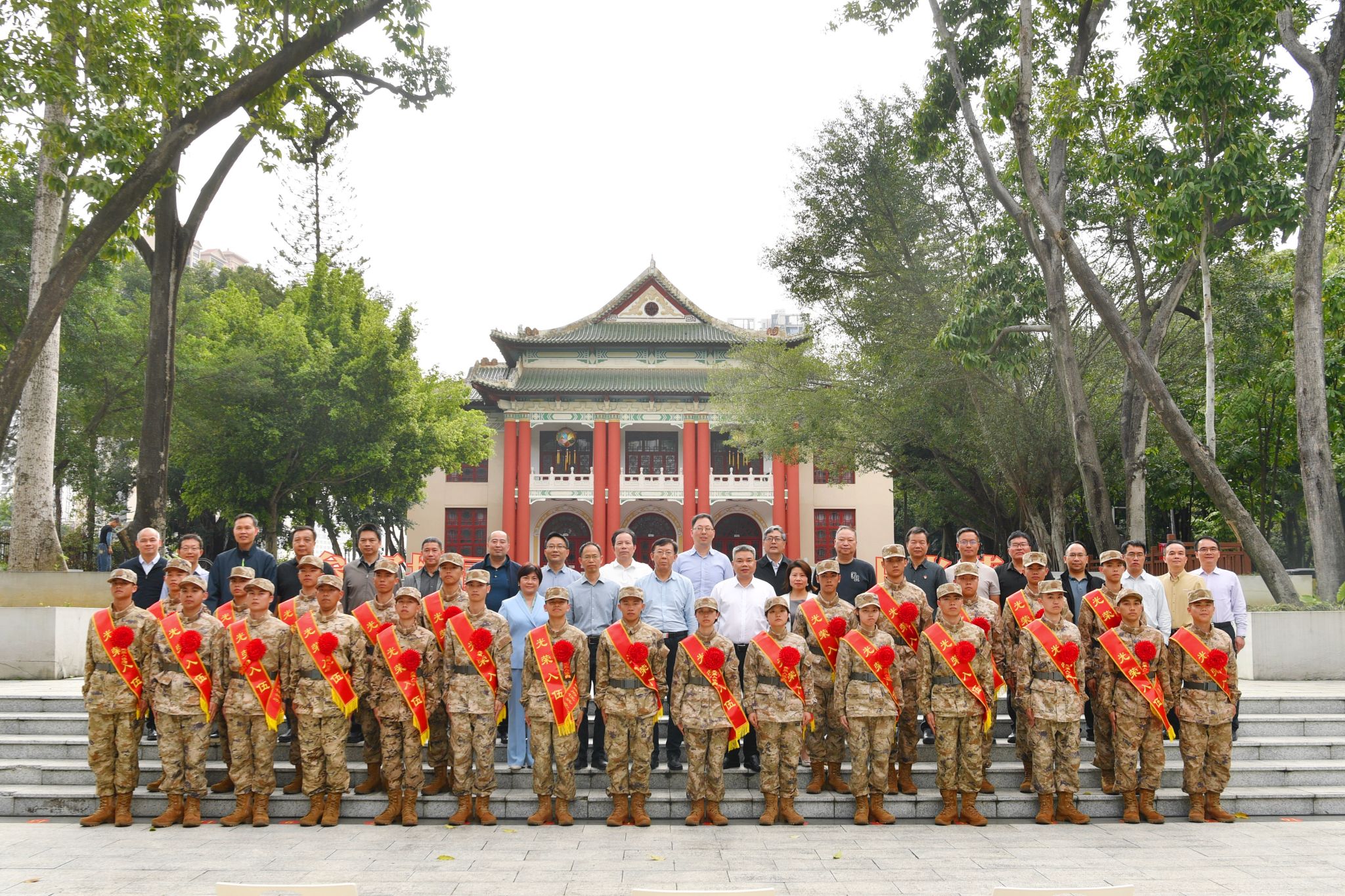 【大学生通讯社报道】3月14日下午,广西民族大学在相思湖校区铸牢中华民族共同体意识体验园举行2026年春季大学生参军入伍欢送仪式,校党委书记唐平秋出席欢送仪式并讲话,校党委副书记陈铭彬主持,学校有关职能部门、各学院负责同志参加仪式。