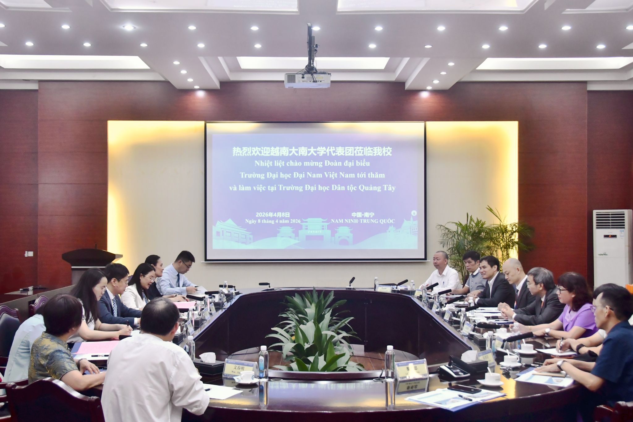 4月8日,高兴宇会见越南大南大学校董会副主席杜军、副校长黎氏清香一行,双方围绕校际人才培养、教师交流、科研合作等内容展开座谈交流,希望在国际中文教育、人工智能等领域深化合作,推动具体项目落地见效。(初审/罗明 图文/实习记者:马家辉 编/韦丽娜 实习编辑:苗予嘉 复审/韦利坤 终审/孙寿媚)