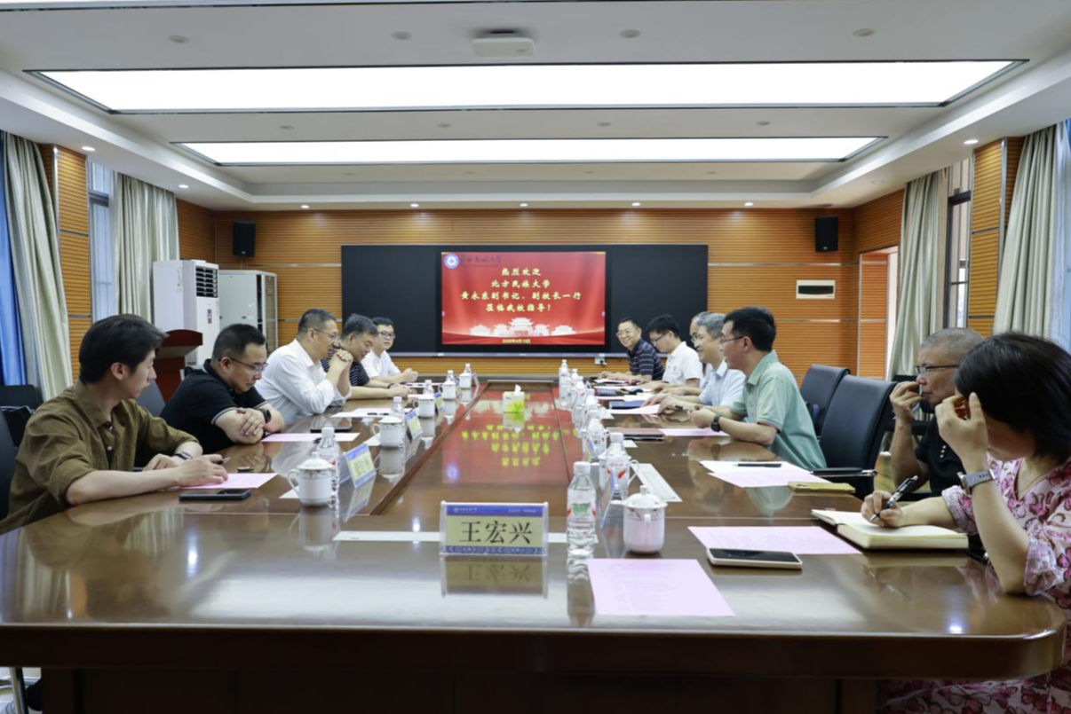4月13日,吕俊彪会见北方民族大学党委副书记、副校长黄永东一行,双方就数学学科高质量发展、校际协同合作等内容进行深入交流,并表示要加强数学学科建设,增强人才培养成效,共同探索民族高校数学学科的特色发展路径。(初审/唐国吉 图文/伍小花 编/李杨洁 复审/韦利坤 终审/孙寿媚)