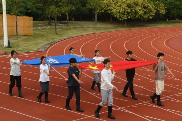与此同时,开幕式表演方阵与彩旗队也在紧张训练中。方阵队形变换井然有序,彩旗队伍步伐铿锵有力,猎猎旗帜与暖阳交相辉映,为即将到来的盛会增添了一抹昂扬的色彩。