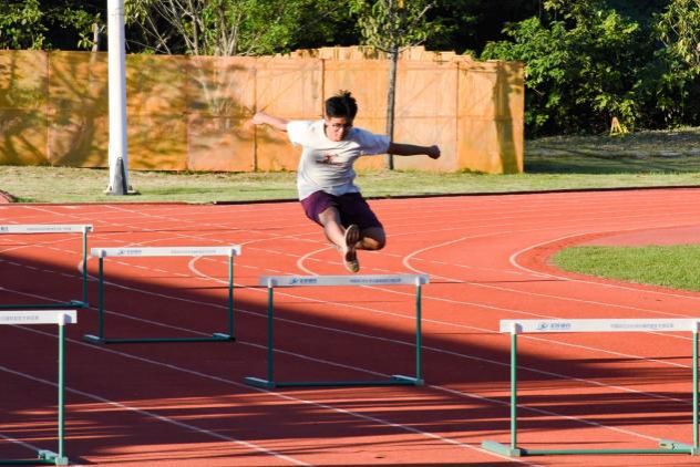 跑道上,跨栏选手如猎豹般冲出起跑线,流畅地跨越一道道栏架;跳高区,运动员助跑、蹬地、腾跃,轻盈一跃,完美过杆;“和谐共进”项目中,队员们脚踏长板,手挽手齐喊号子,在协作中稳步前行。