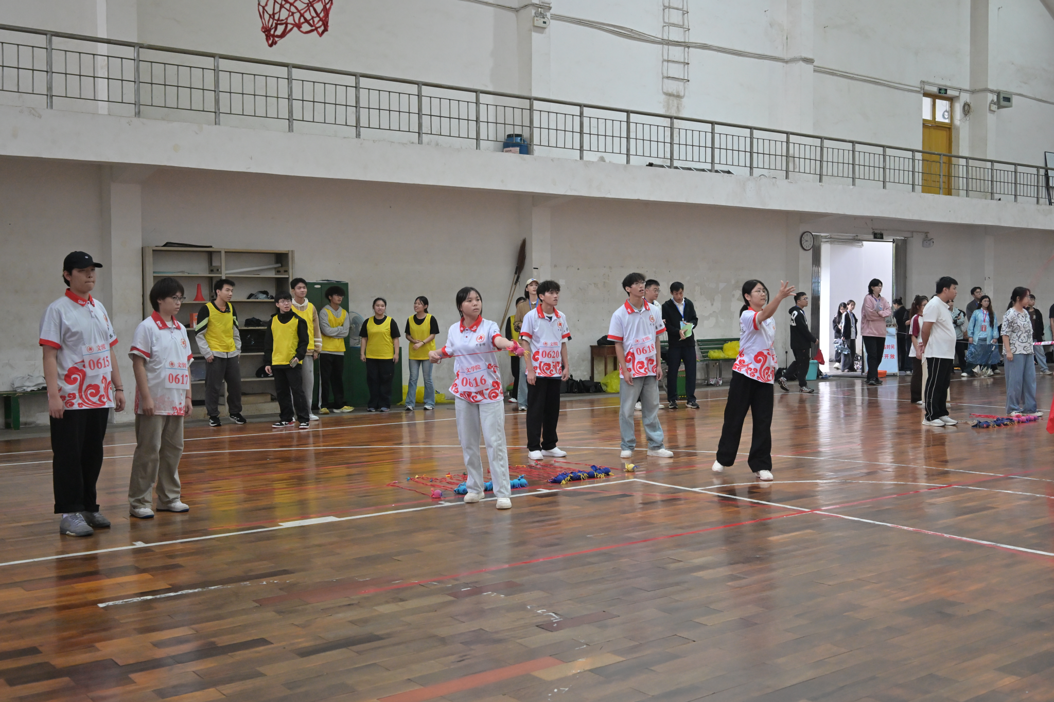 随着比赛的深入,文学院的选手们彼此配合默契。抛与接之间,节奏行云流水。绣球入筐的声响,宛如谱写着一曲信任的协奏曲。即使绣球入筐后被弹出或是直接落到地上,大家也没有慌张,仍有条不紊地进行着比赛,稳稳地将一个又一个绣球“收入囊中”。