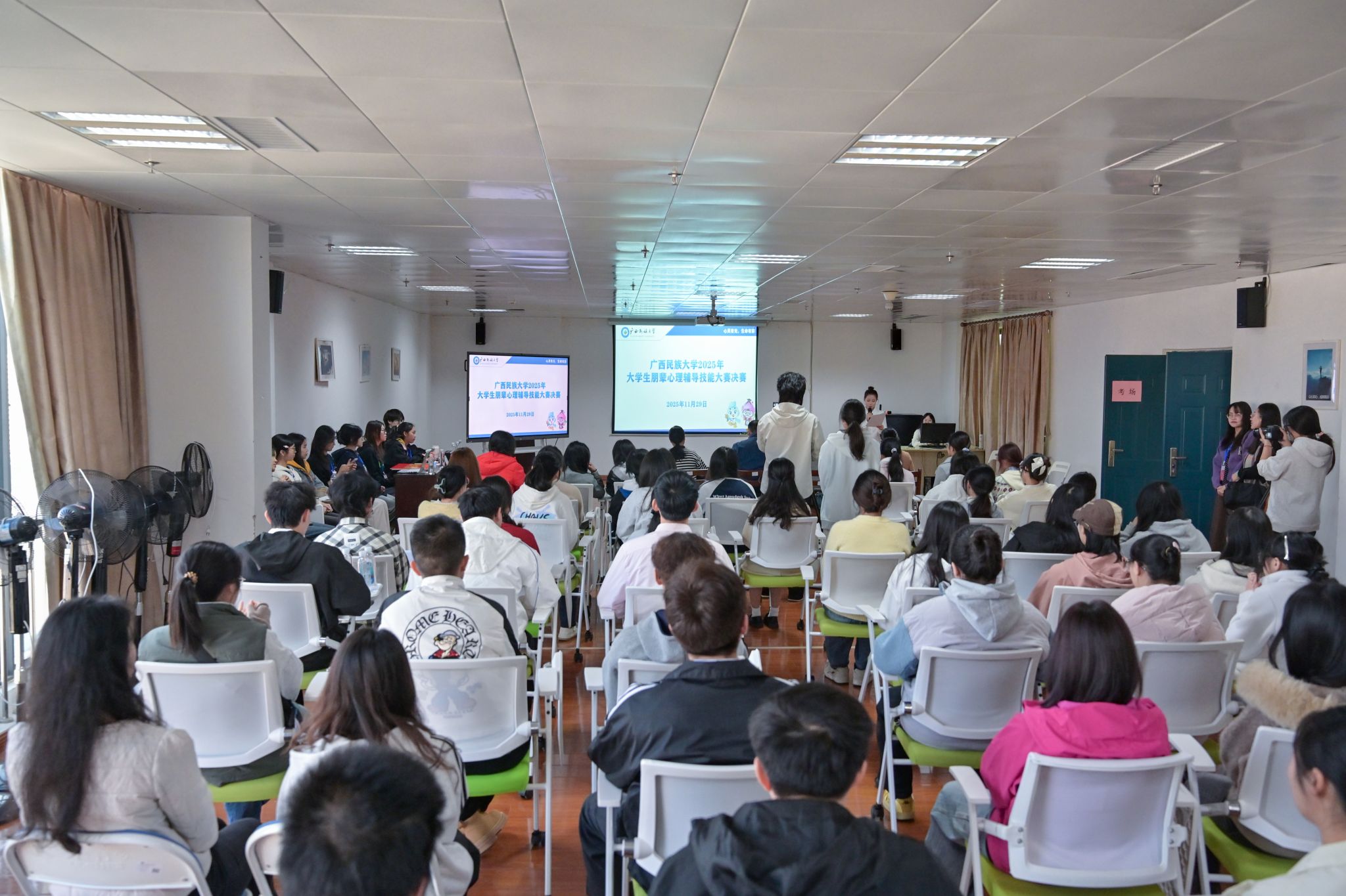 【大学生通讯社报道】11月29日,广西民族大学于相思湖校区文科综合实验教学中心1806室和大学生活动中心502室,举办了以“心里有光,生命有彩”为主题的2025年秋季学期大学生朋辈心理辅导技能大赛。