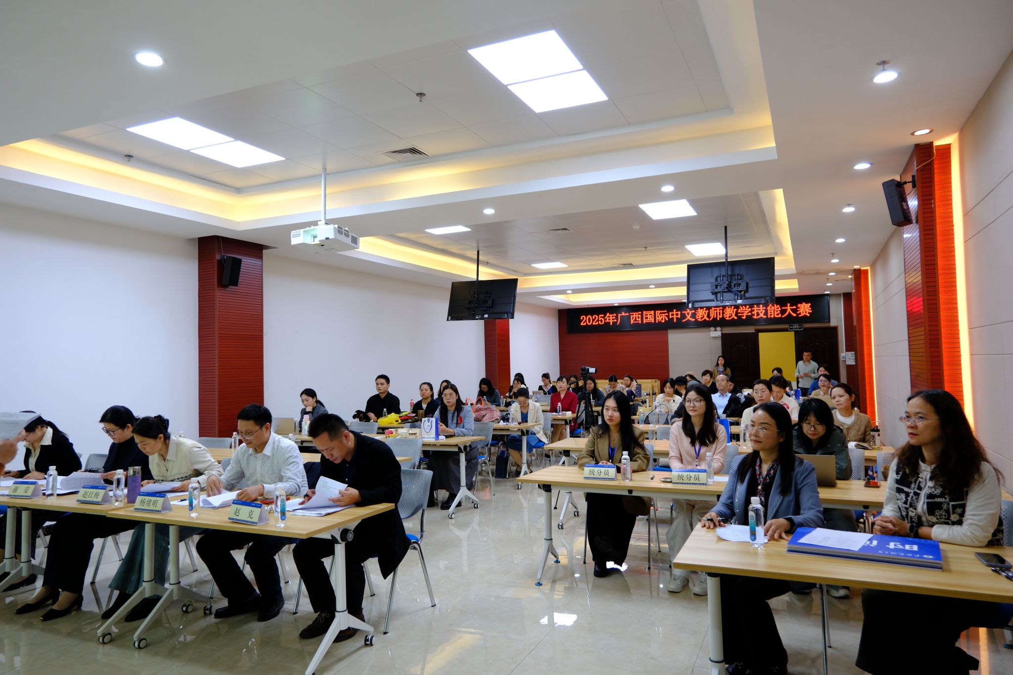 12月20日,2025年广西国际中文教师教学技能大赛决赛在广西民族大学相思湖校区举行。共有来自全区8所高校的11名优秀教师齐聚决赛现场,通过教学技能比拼与跨文化交流,共同探索国际中文教育创新路径,为提升区域国际中文教育质量注入新动能。