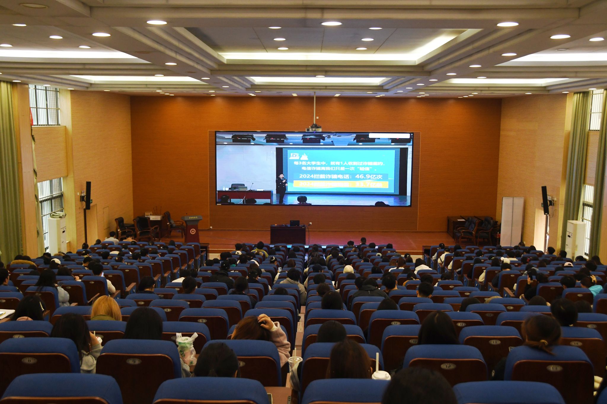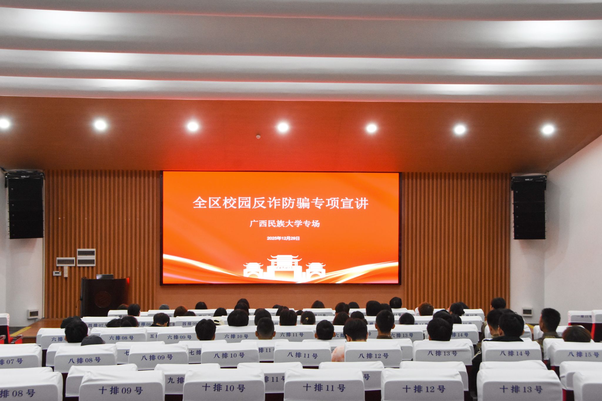 本次宣讲会由自治区教育厅会同公安厅委托广西警察学院组建专家宣讲团队开展,现场设置反诈骗问答环节,同学们踊跃参与互动,现场氛围热烈。(初审:罗少科 编辑:李杨洁 复审:韦利坤 终审:孙寿媚)