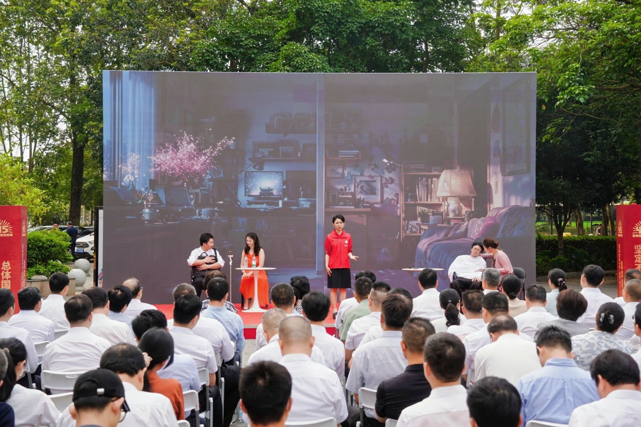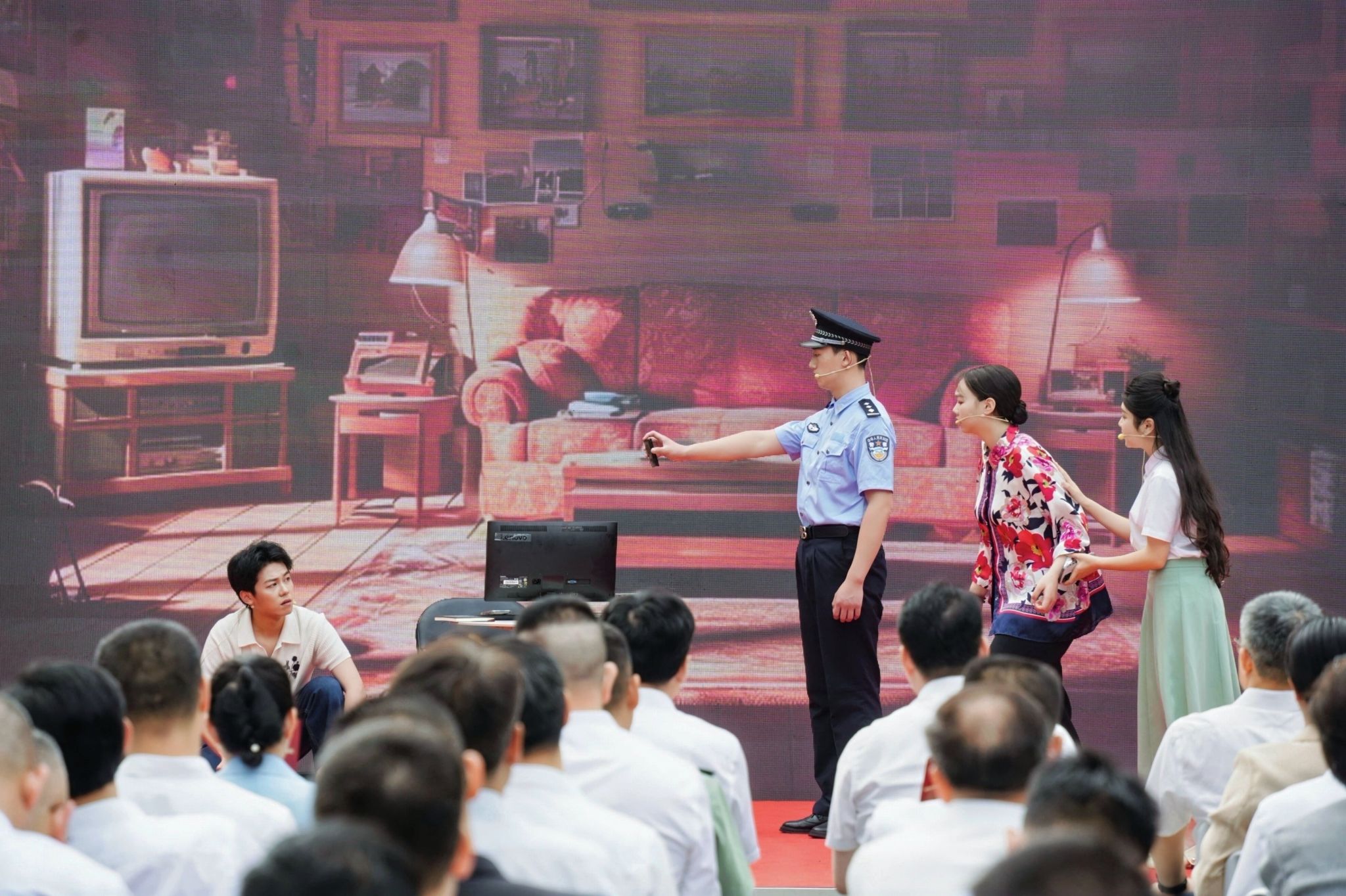 活动现场,学校学子带来的四个精心创编的小品,生动演绎了反奸防谍、基层法治、边境守护、反诈防骗等国家安全主题。小品《披着宗教外衣的间谍》深刻揭露了境外间谍假借宗教名义进行渗透、窃取国家机密的危害,警醒广大民众提高警惕,共同守护国家安全;《分贝之间》聚焦“邻里噪音”这一城市公共议题,以真实场景再现摩擦细节,并借此契机普及相关法律知识,倡导邻里间文明共处、依法解纷,共建和谐社区;《守一寸边关,护万众平安》紧密结合广西边疆地域特点,生动诠释了边境警民忠诚守护的感人故事,深刻揭示了“守护国门,就是守护万家平安”这一朴素而崇高的信念,彰显了平凡人物的家国情怀;《反诈,守护万家钱袋》直击电信诈骗这一社会痛点,通过情景演绎拆解诈骗套路,旨在唤醒公众警觉、提升反诈能力,共同筑牢守护家庭财产的安全屏障。这种贴近群众、贴近生活的宣传教育方式,赢得了现场观众的一致好评,成为本次主题活动的一大亮点。