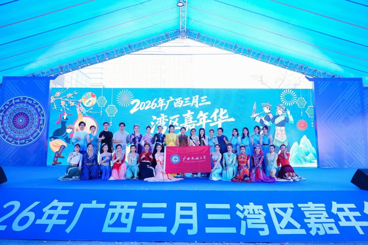 4月17日,广西民族大学师生代表团一行应自治区人民政府驻广州办事处邀请,赴广州参加2026年“广西三月三·湾区嘉年华”活动。