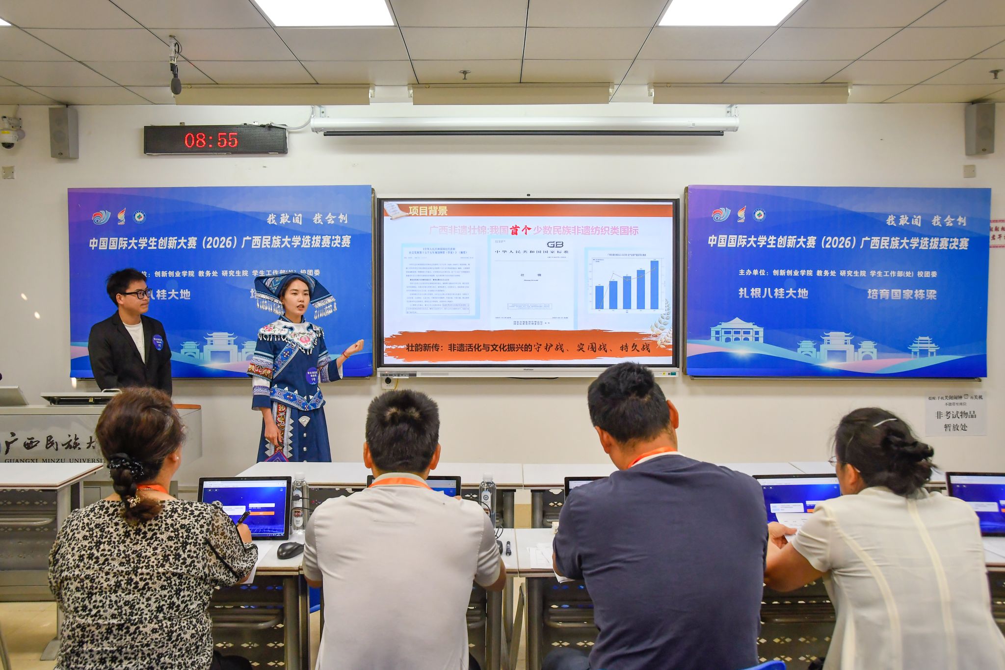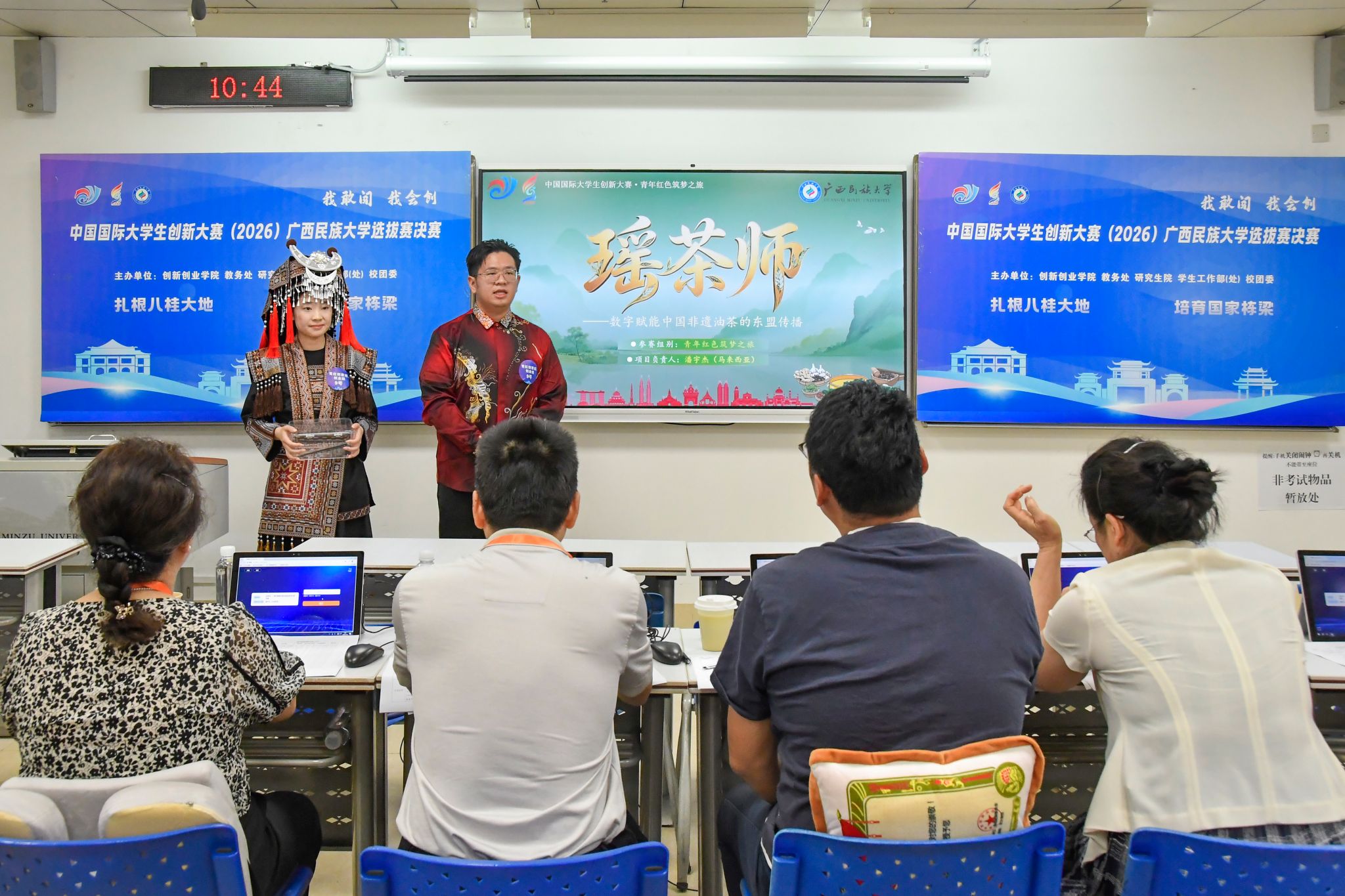 【大学生通讯社报道】4月25日,中国国际大学生创新大赛(2026)校级选拔赛决赛在广西民族大学相思湖校区国际教育综合大楼举行。