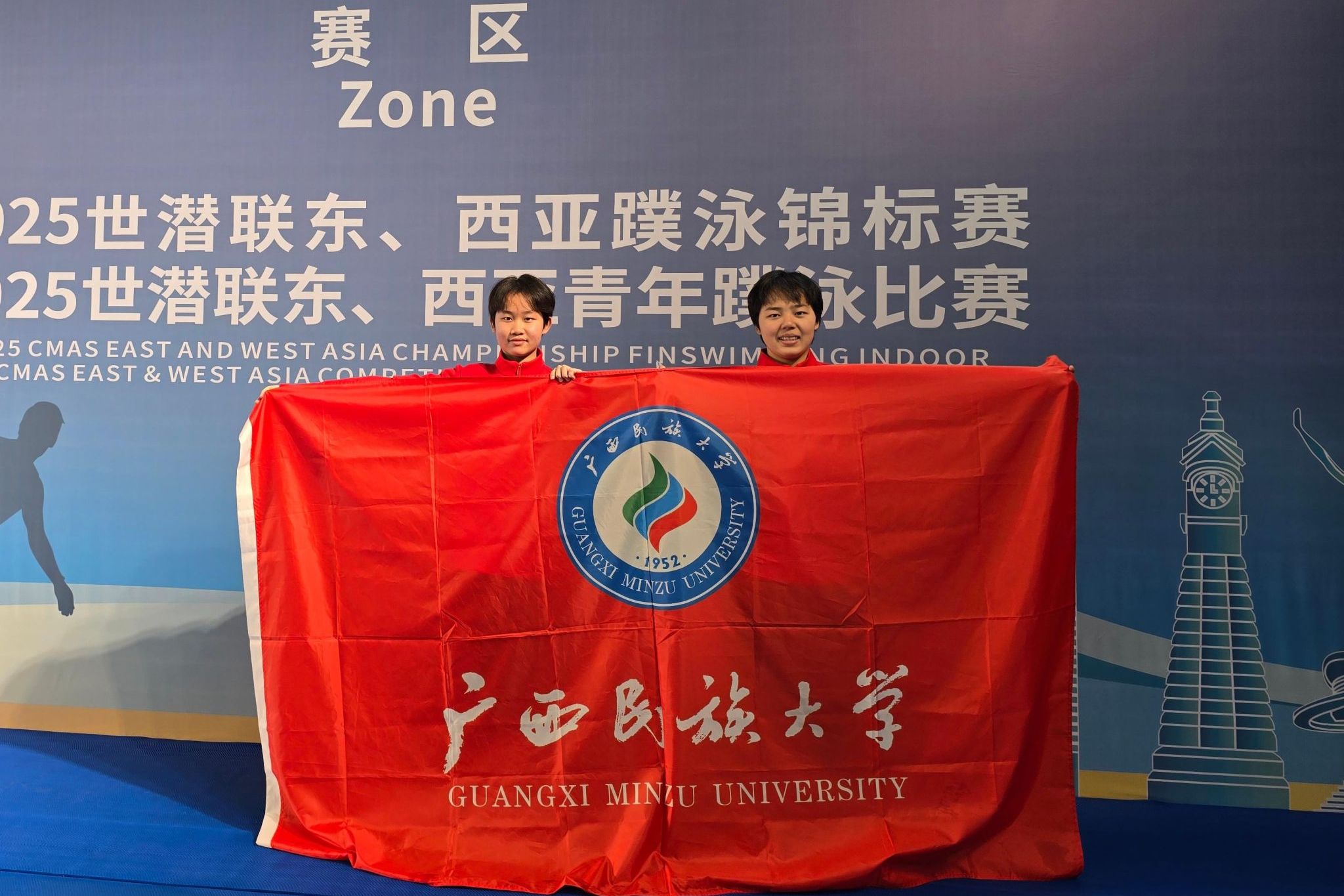近日,国家体育总局水上运动管理中心公布2026年世界大学生蹼泳锦标赛参赛人员名单。广西民族大学体育与健康科学学院2024级运动训练专业学生姚华莉、谢盈盈成功入选,将代表中国参加本届赛事。