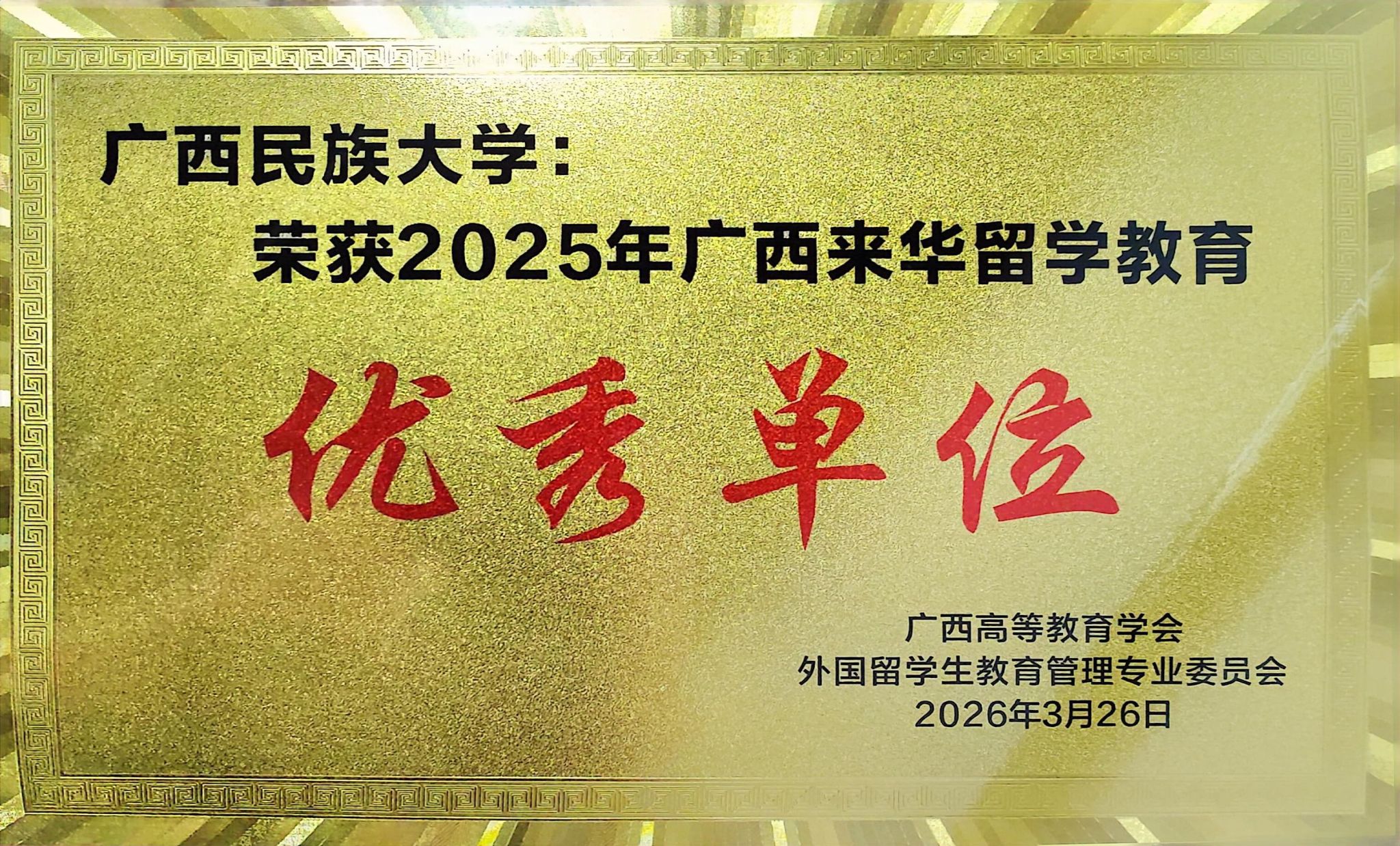 广西民族大学荣获“2025年广西来华留学教育优秀单位”称号