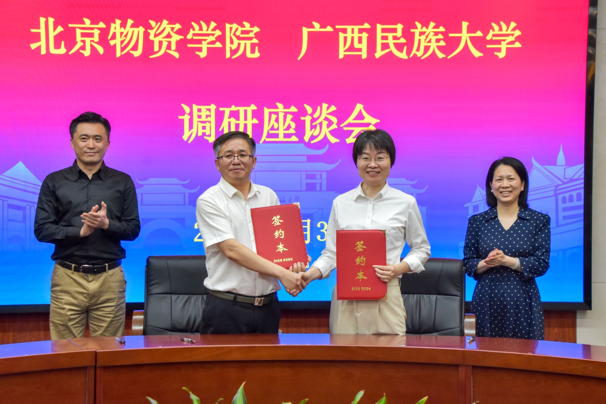 于海蛟介绍北京物资学院的办学特色与发展思路。希望双方在人才培养、科研合作、物流产业等领域加强对接,全面落实战略协议,形成合作生态,打造示范性项目,依托广西独特的区位优势和东盟市场,共同探索产学研合作新路径,推动成果转化落地。
