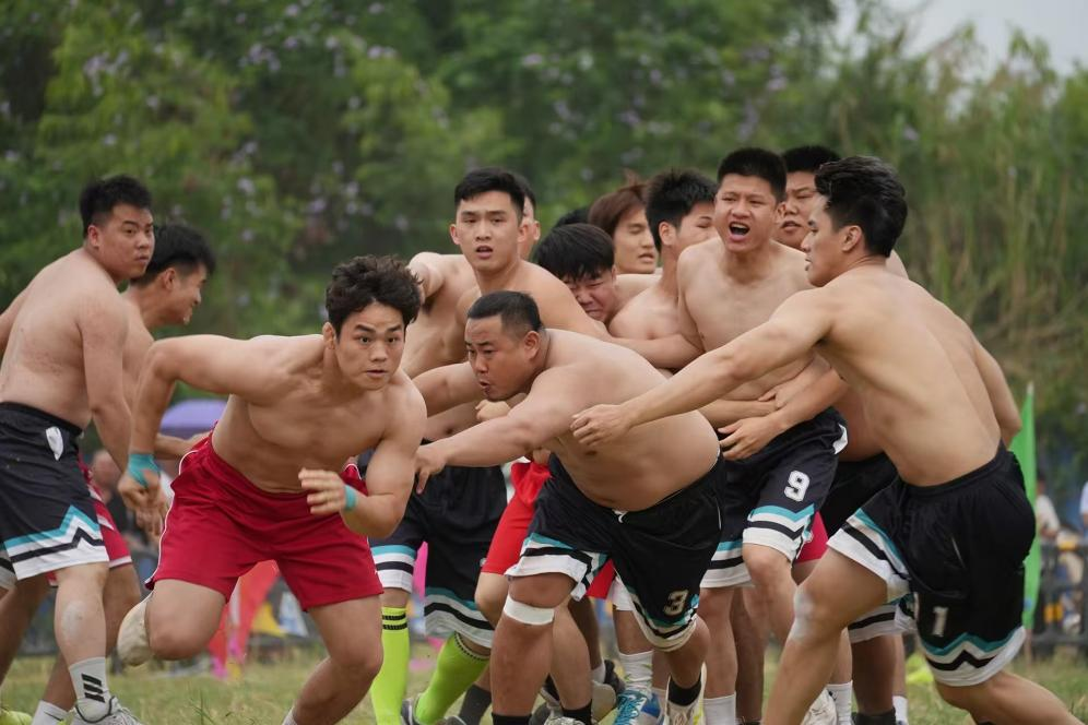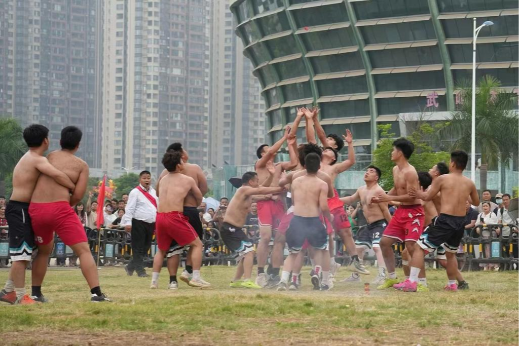 花炮运动是一项兼具对抗性与观赏性的民族传统体育项目,素有“东方橄榄球”之称。双方队员在开阔场地上通过奔跑、传递、掩护、拦截等方式,争抢花炮并将其送入对方花篮得分,既考验个人速度与力量,更强调团队战术配合与临场应变能力,在我国少数民族地区有着深厚的群众基础。
